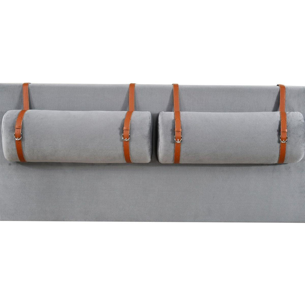 - Plush Headboard with Built-in Pillows: Enjoy luxurious comfort with a plush upholstered headboard featuring two built-in pillows for added support.