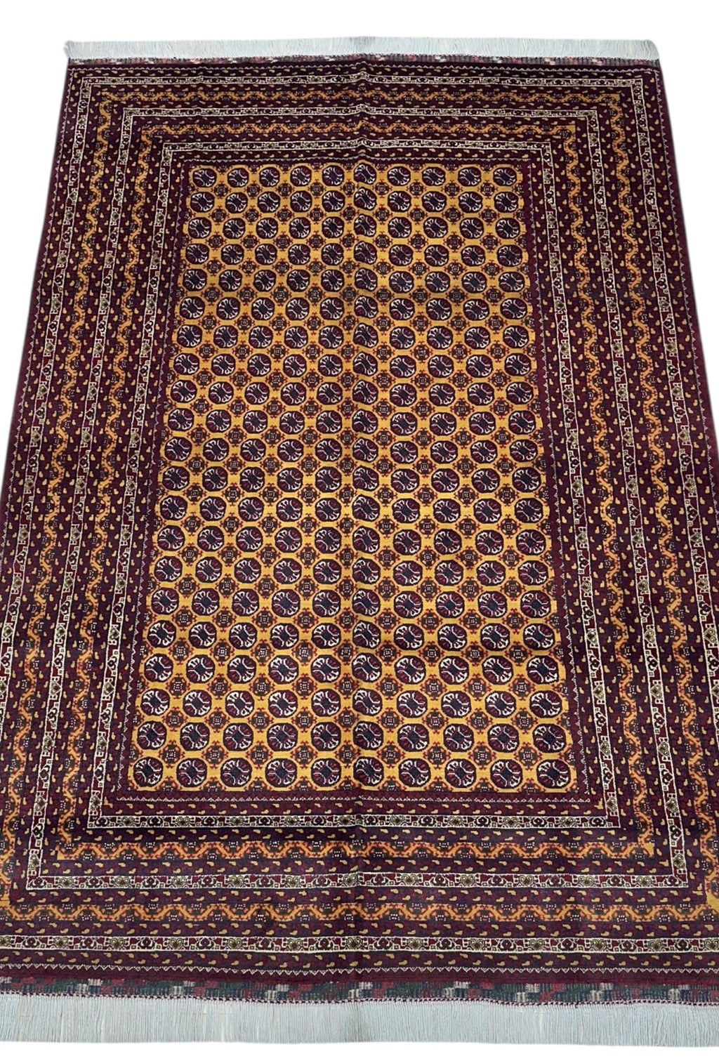 This hand-knotted mawri rug features rich color tones and traditional Afghan weaving. Made with high-quality wool on a cotton foundation, it offers both beauty and durability. Ideal for adding character and texture to entryways, living rooms, or studies.
