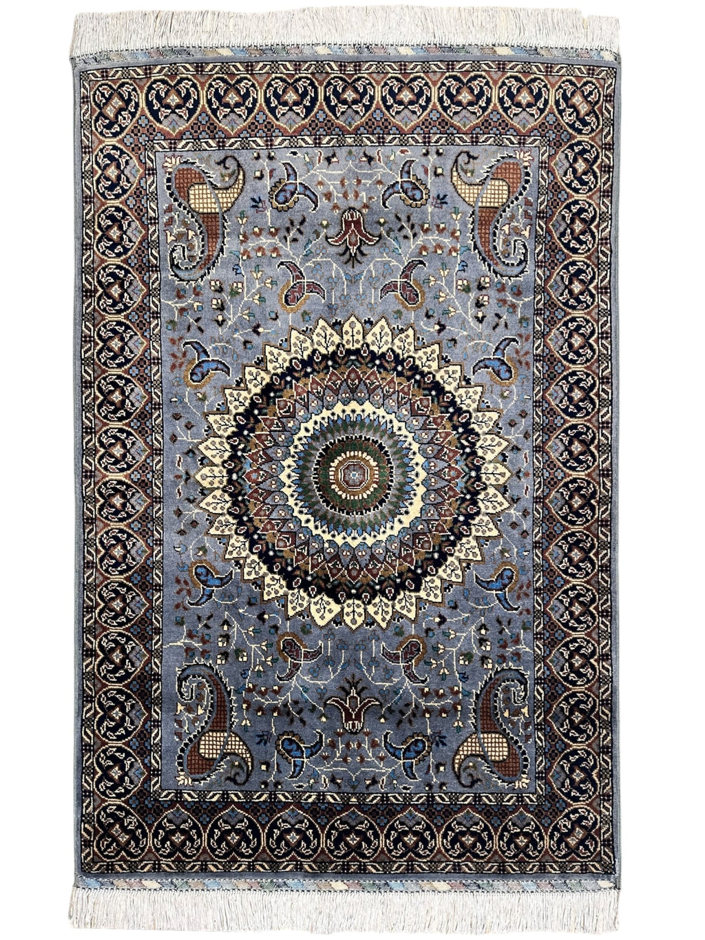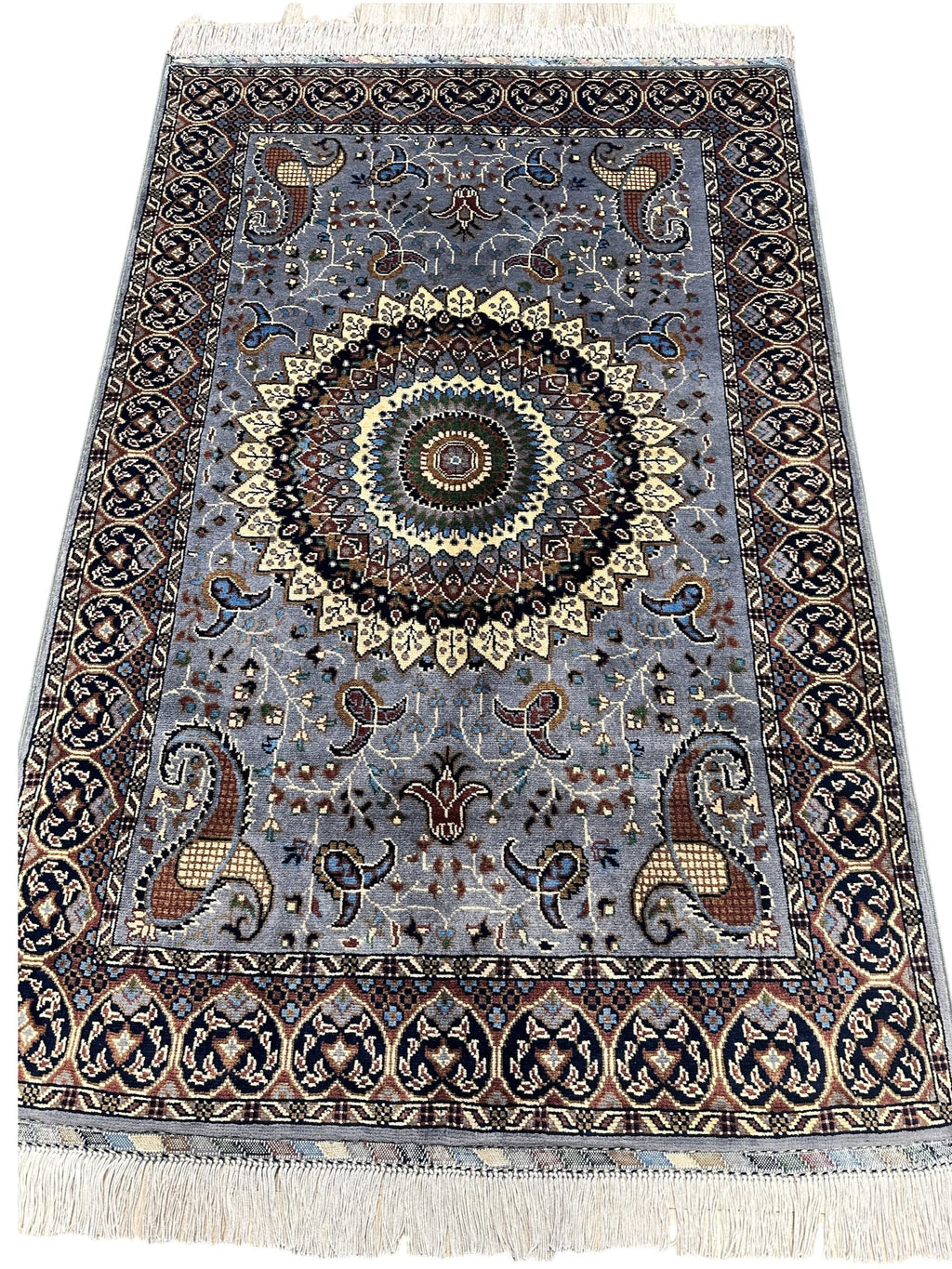 Add a touch of elegance to your space with this exquisite hand-knotted Parak rug, featuring a sophisticated silver-gray palette accented by delicate geometric patterns. The Parak design showcases clean lines and intricate detailing, offering a modern twist on traditional Afghan craftsmanship. Measuring 40” x 60” with a 0.5” thickness, this rug combines lasting durability with luxurious softness, making it a versatile addition to your living room, bedroom, or office. Carefully crafted by skilled artisans, this rug represents the finest traditions of Afghan rug-making.
