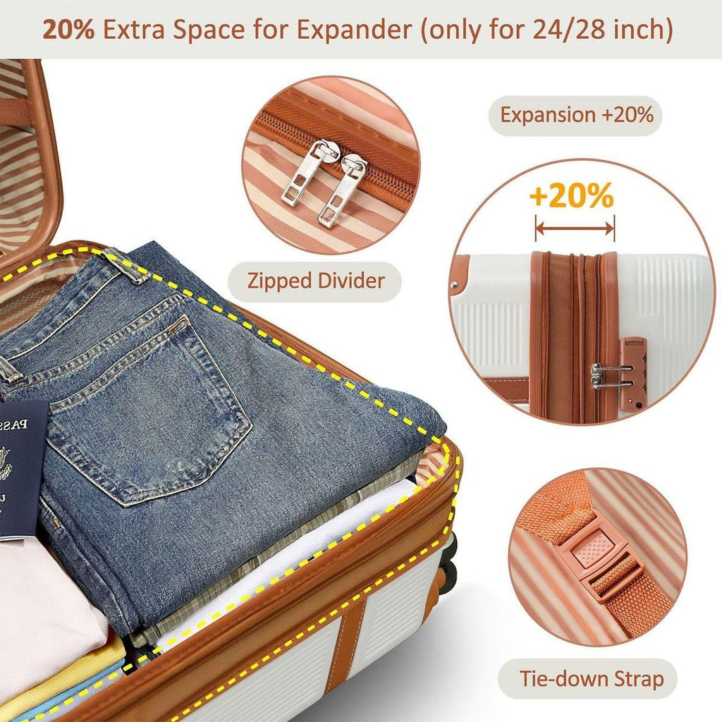 - Expansion function adds 20% extra space (only for 24-inch and 28-inch). The 24-inch and 28-inch luggage feature reinforced side handles and bumper feet for easy portability.