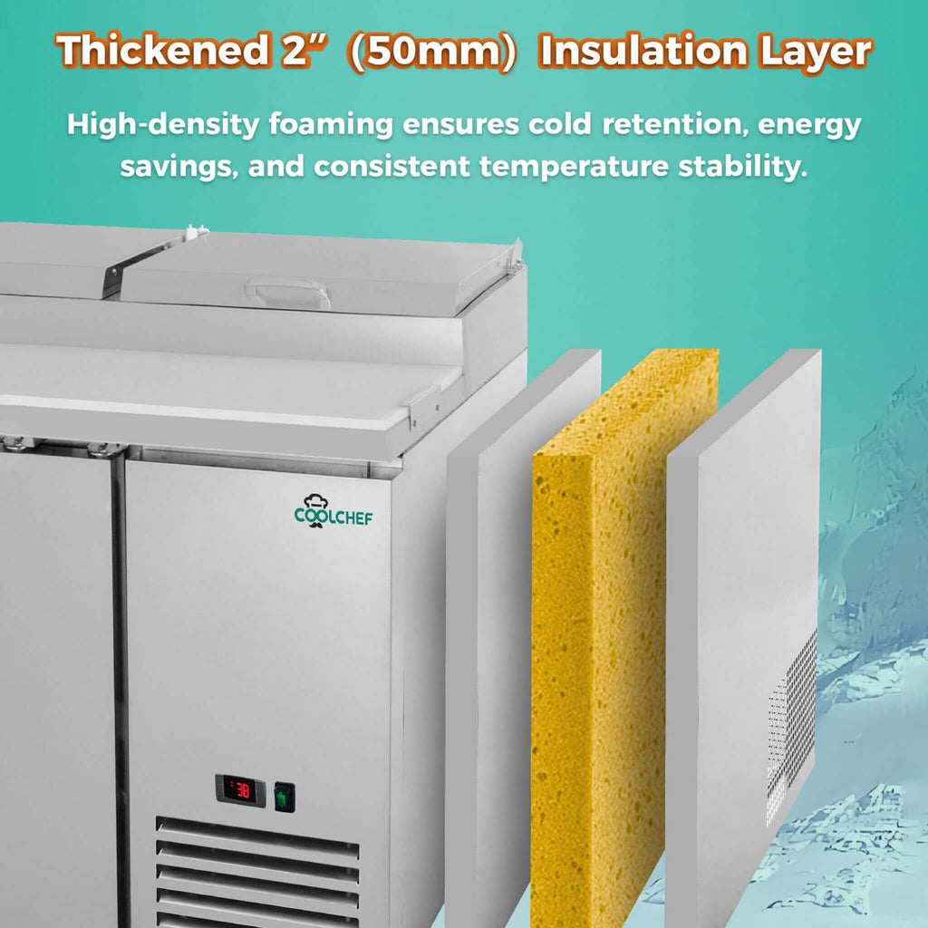 The ultimate investment in efficiency and food safety. Engineered with robust SS304 food-grade stainless steel interior and a durable SS430 exterior, this table is built to withstand the relentless pace of any commercial environment while maintaining a sleek, professional look. Benefit from superior performance and cost savings thanks to the Eco-Conscious R290 refrigerant and 50mm insulation, which together ensure maximum energy efficiency and consistent, perfectly chilled ingredients, all monitored by an accurate digital temperature control system.