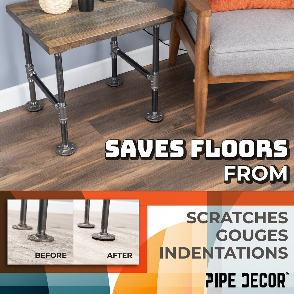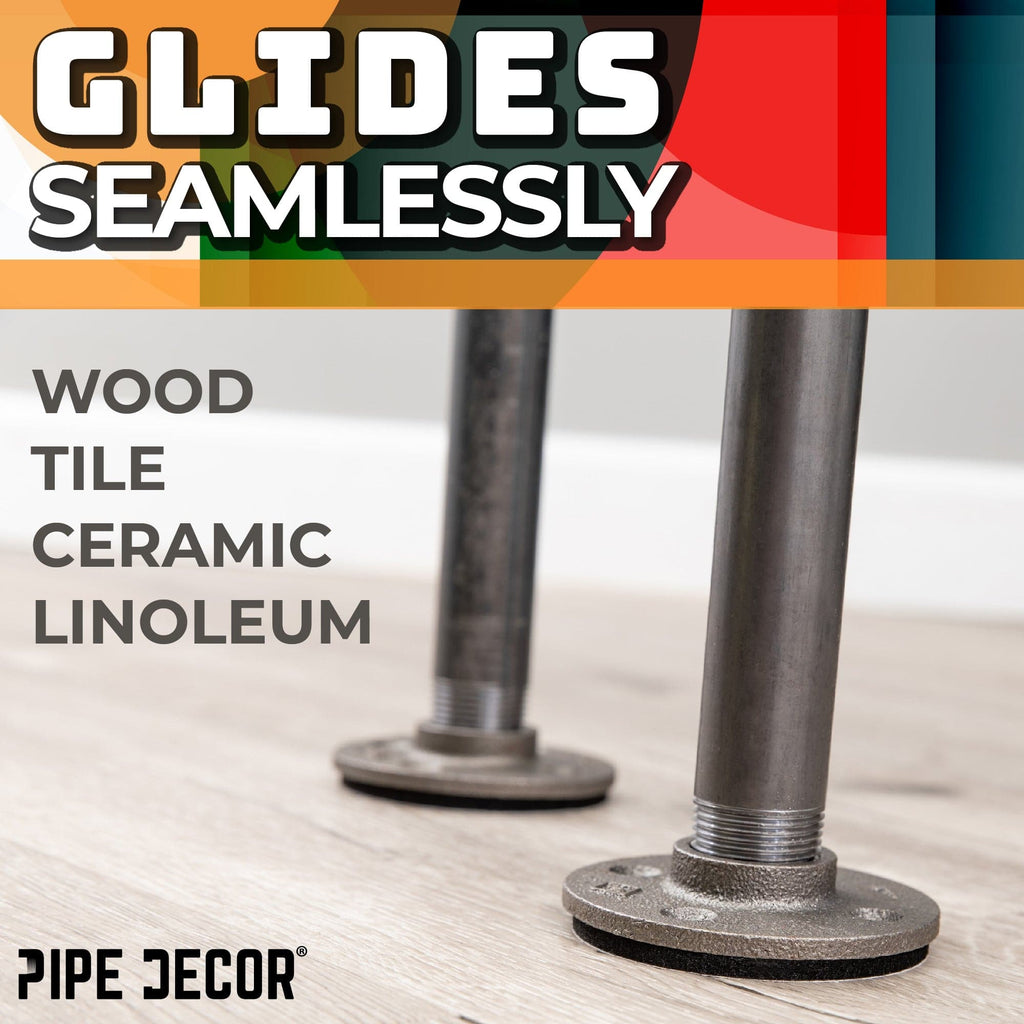 Take your furniture to the next level! Customize your pipe furniture with heavy duty felt pads that make rearranging your decor a breeze, part of our line of practical accessories that can make your furniture even better. Felt pads allow furniture to glide seamlessly across your flooring. The thick felt provides a heavy-duty barrier that saves your floors from scratches, gouging, and other damage. Our self-adhesive felt pads are also easy to apply. Once placed, they won’t slide around or leave a sticky residue.