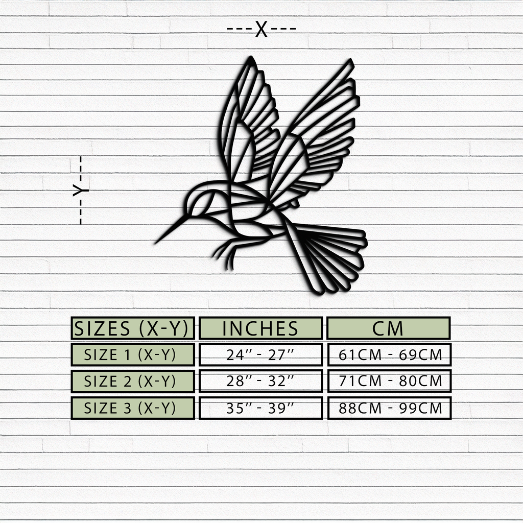 Bring grace and motion to your space with our Hummingbird Metal Wall Art. Featuring a beautifully detailed silhouette of a hummingbird in mid-flight with extended wings and pointed beak, this piece symbolizes energy, lightness, and the beauty of nature. Perfect for living rooms, bedrooms, balconies, or garden spaces.