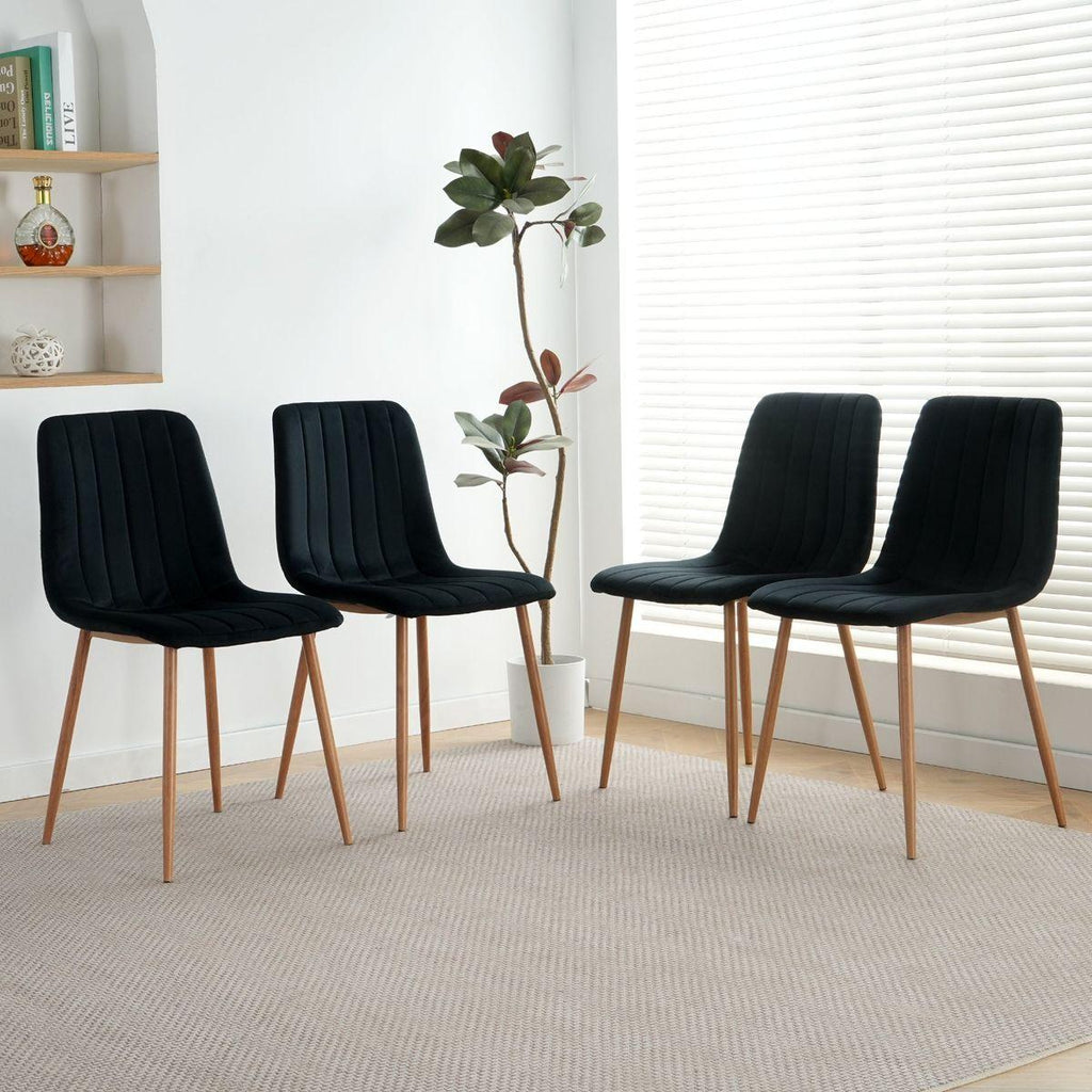 Indoor black velvet dining chair, modern kitchen dining chair with backrest, upholstered side chair with hot transfer metal legs, Family Kitchen Dining Room and living room (set of 4)