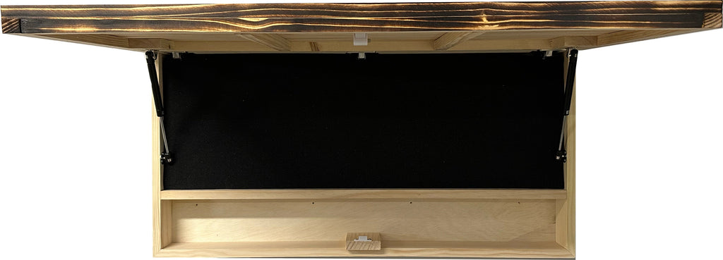 Securely store your gun and other home self defense gear inside the Bellewood Designs Large Burnt American Flag Hidden Gun Cabinet. The American Flag is handmade with burnt wood, and then finished with high gloss finish which is sure to make a statement in any room. Our decorative Burnt American Flag Gun Case is discreet, wall-mountable and securely stores your firearm and other tactical gear while keeping it easily accessible, so you'll never have to worry about leaving it unattended.