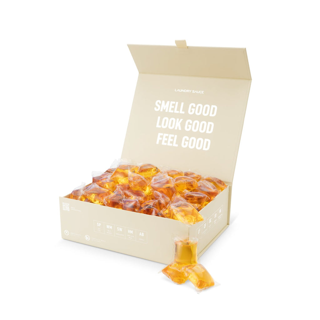 Welcome to an unparalleled laundry experience with our Performance Liquid Laundry Detergent Pods. By collaborating with the world's top perfumers, we formulated sophisticated fragrances made with natural and responsibly-sourced ingredients, leaving your fabrics smelling next level. We didn't stop there, each laundry pod is up to 4x concentrated compared to traditional liquid laundry detergent, enriched with bio-enzymes, tackling the toughest stains and reviving fabrics. Immerse your premium threads in luxury with the world's best smelling laundry detergent. (1 x [pods_quantity] Laundry Detergent Pods/box)