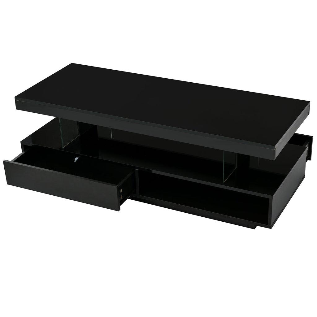 Our High Gloss Coffee Table is adorned with LED lights, whether you're looking for a warm and cozy atmosphere or a vibrant and dynamic ambiance, the LED lights can be easily adjusted to suit your mood or occasion.The coffee table comes with built-in storage compartments hidden beneath the tabletop. This provides ample space to store magazines, remote controls, and other essential items, keeping your living room clutter-free. When you're hosting a casual gathering with friends or enjoying a quiet evening alone, this coffee table brings a touch of modernity and sophistication to your living room.