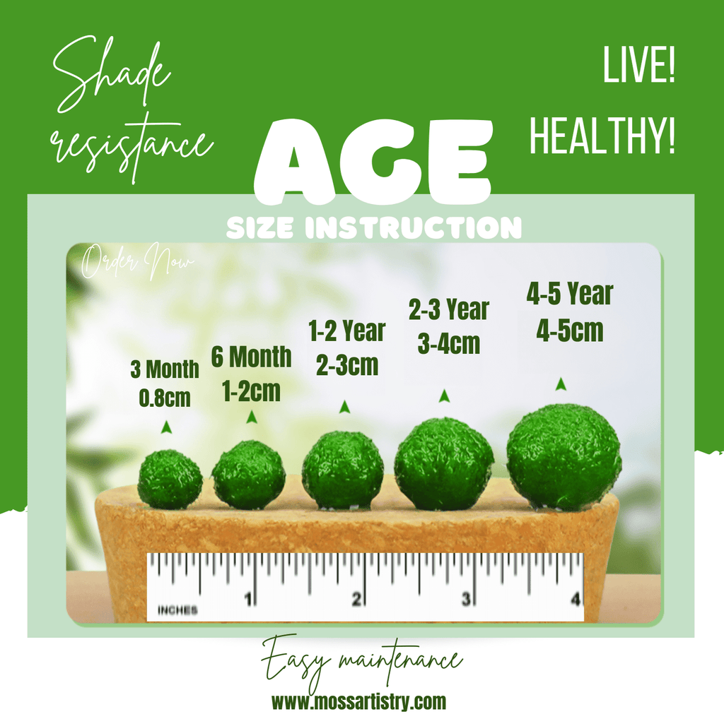 Age: Prices vary significantly based on the size of the algae. We utilize a personification method to distinguish between sizes, but note that they do not reflect the actual age of the Marimo.