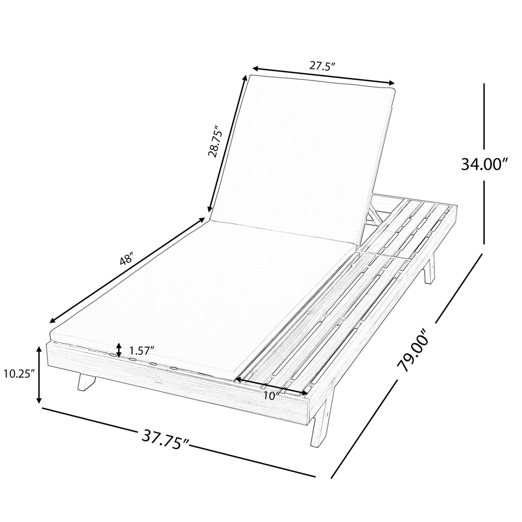 - DIMENSIONS :-Chaise: 79'L × 37.75'W × 34'H (max recline) with 27.5' foldable section .-Cushion: 27'W × 76.25'L × 2'H.