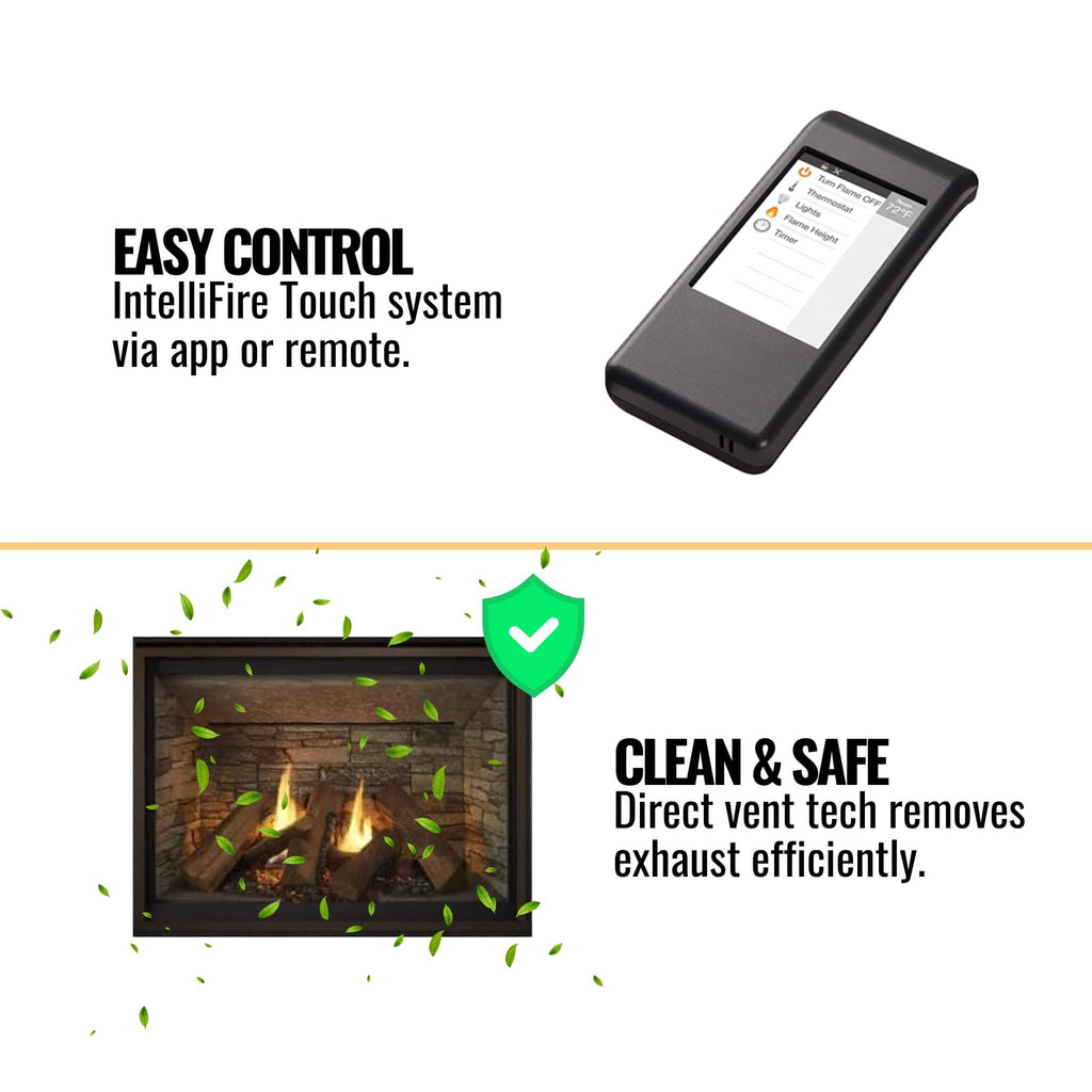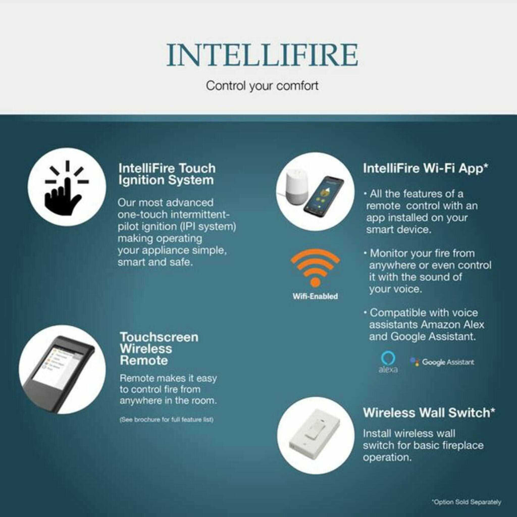 - With the IntelliFire Touch system, you can manage your fireplace seamlessly using the IntelliFire App, your smart speaker, a sleek touchscreen remote, or even a wireless wall switch. Enjoy the perfect ambiance with just a touch.