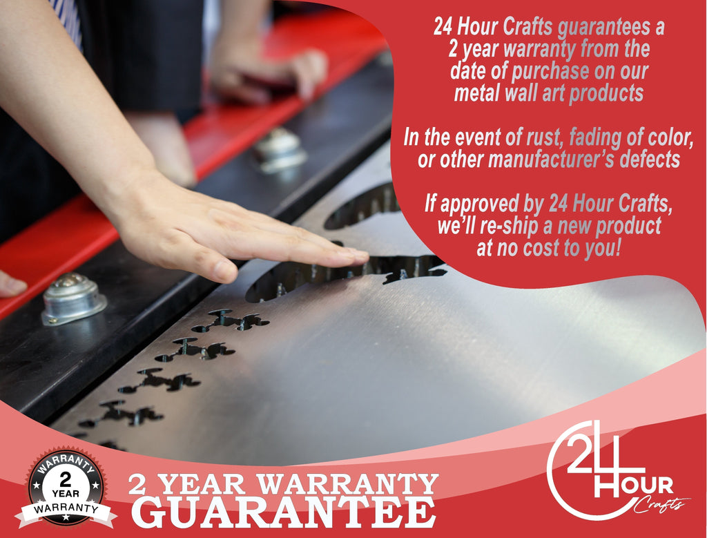 This metal sign is made from 16 gauge steel and powder coated to last a lifetime. Sizes range from 12 inches up to 46 inches.