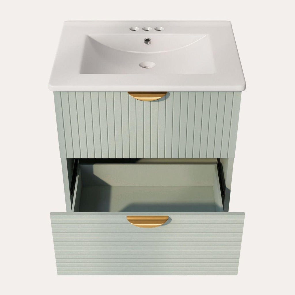 Modern 24-Inch Wall-Mounted Bathroom vanity with 2 Drawers, Green - Ideal for Small Bathrooms