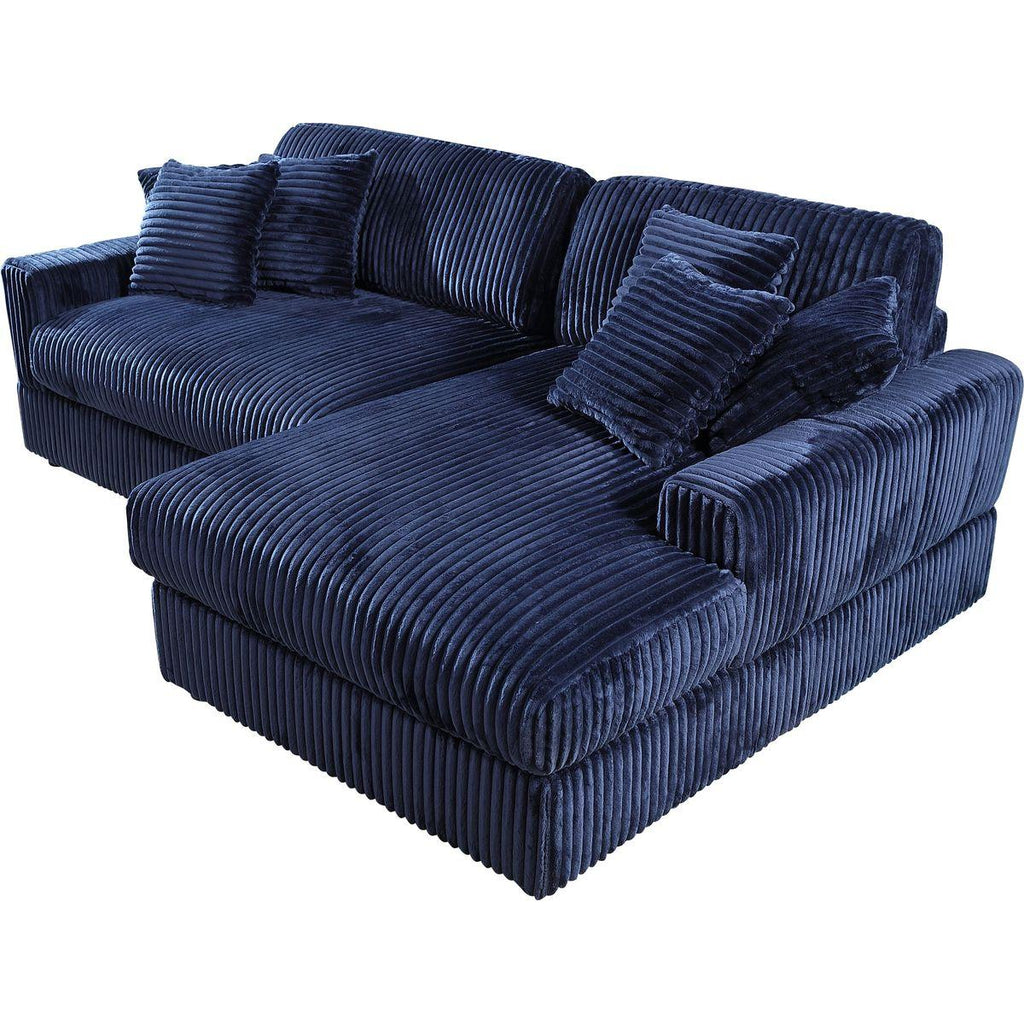 Modern Corduroy Blue Corner sofa Sleeper Sofa Couch With Comfy Deep Seat& 6 Pillows