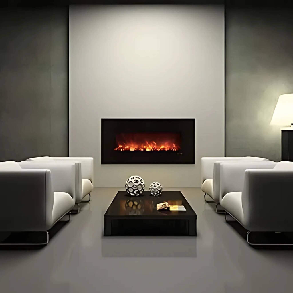 • Seamlessly integrate the fireplace into your living space with the option for recessed installation into a 2" x 4" wall or simple wall mounting, ensuring a modern and low-profile aesthetic.