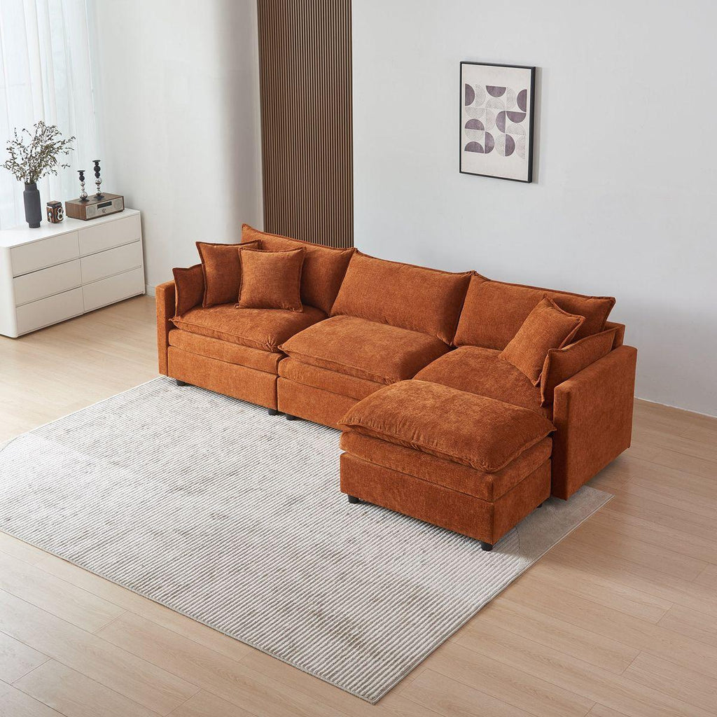 Modular L-Shaped Sectional Sofa with Ottoman, Chenille Fabric Sofa Couch, Comfy Upholstered Furniture for Living Room, Apartment, Studio, Office