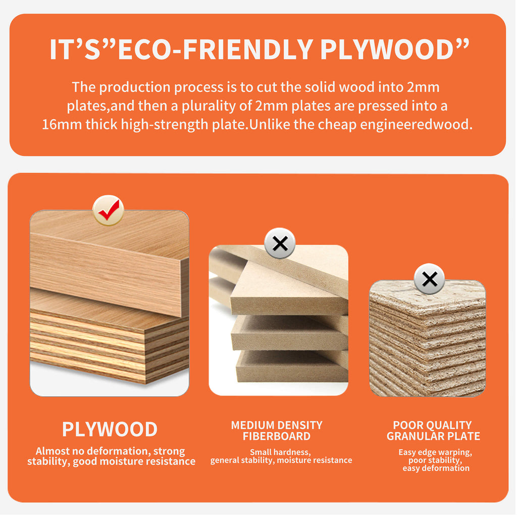 - Crafted with high-quality eco-friendly plywood, it’s built to resist moisture, scratches, and daily wear.