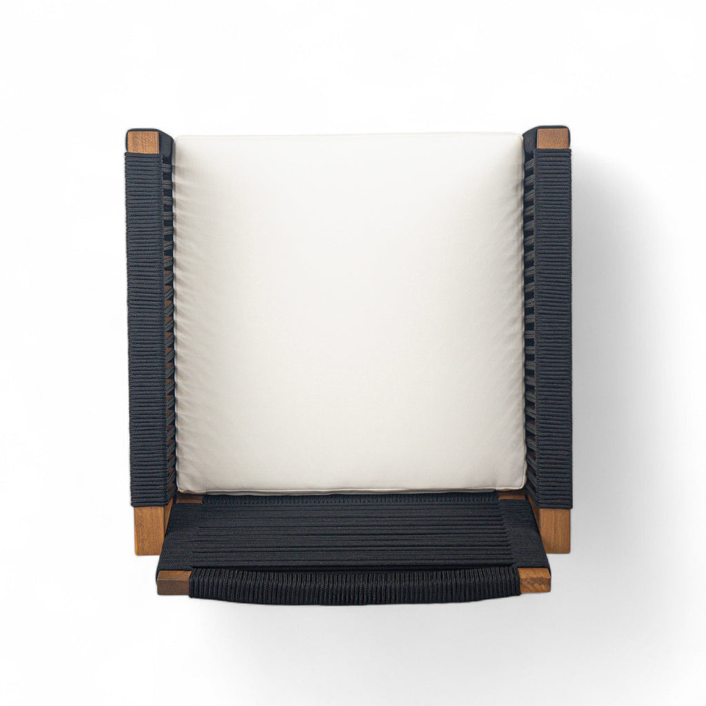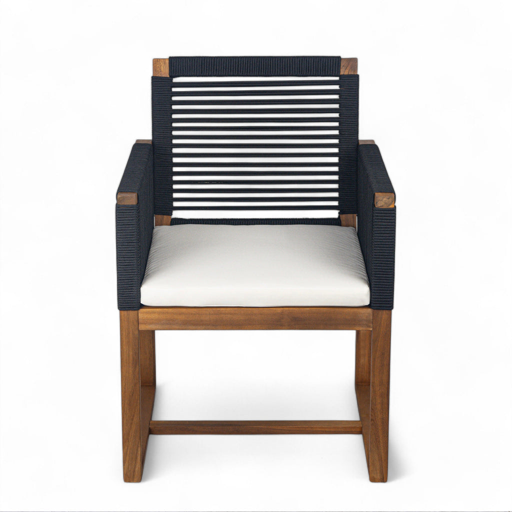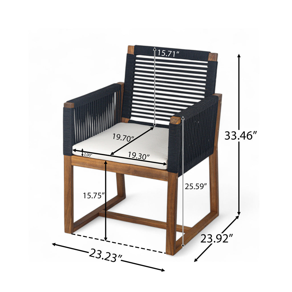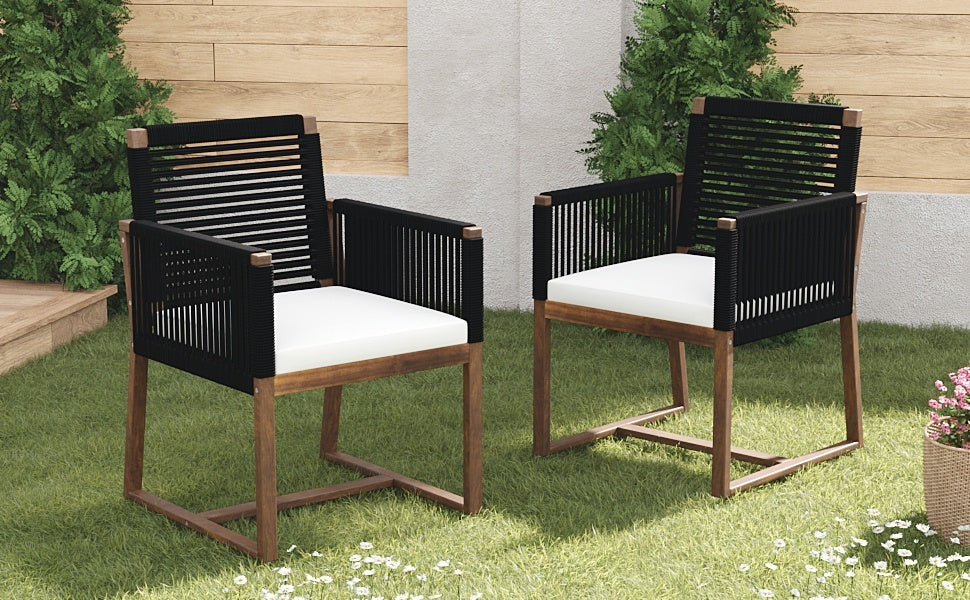 Outdoor Dining Chairs Set of 2, Acacia Wood Patio Armchair with Rope Design Back and Arms and Washable Cushion,for Backyard, Poolside, Garden,Black