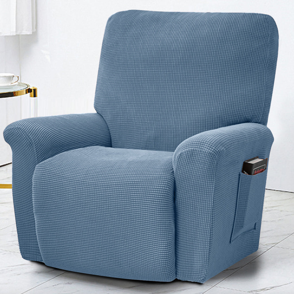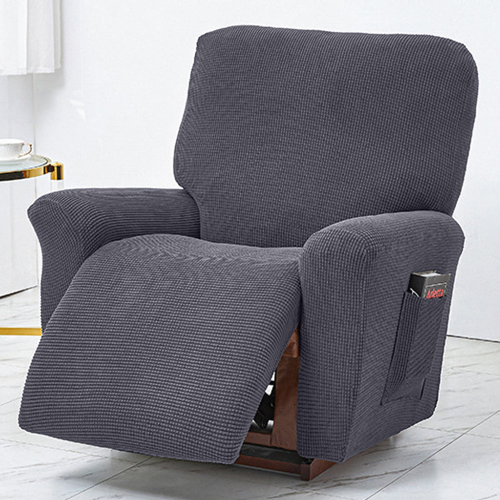 Polar Fleece Recliner Chair Cover, 4-Piece Soft Plush Slipcover with Pocket for Reclining Chairs