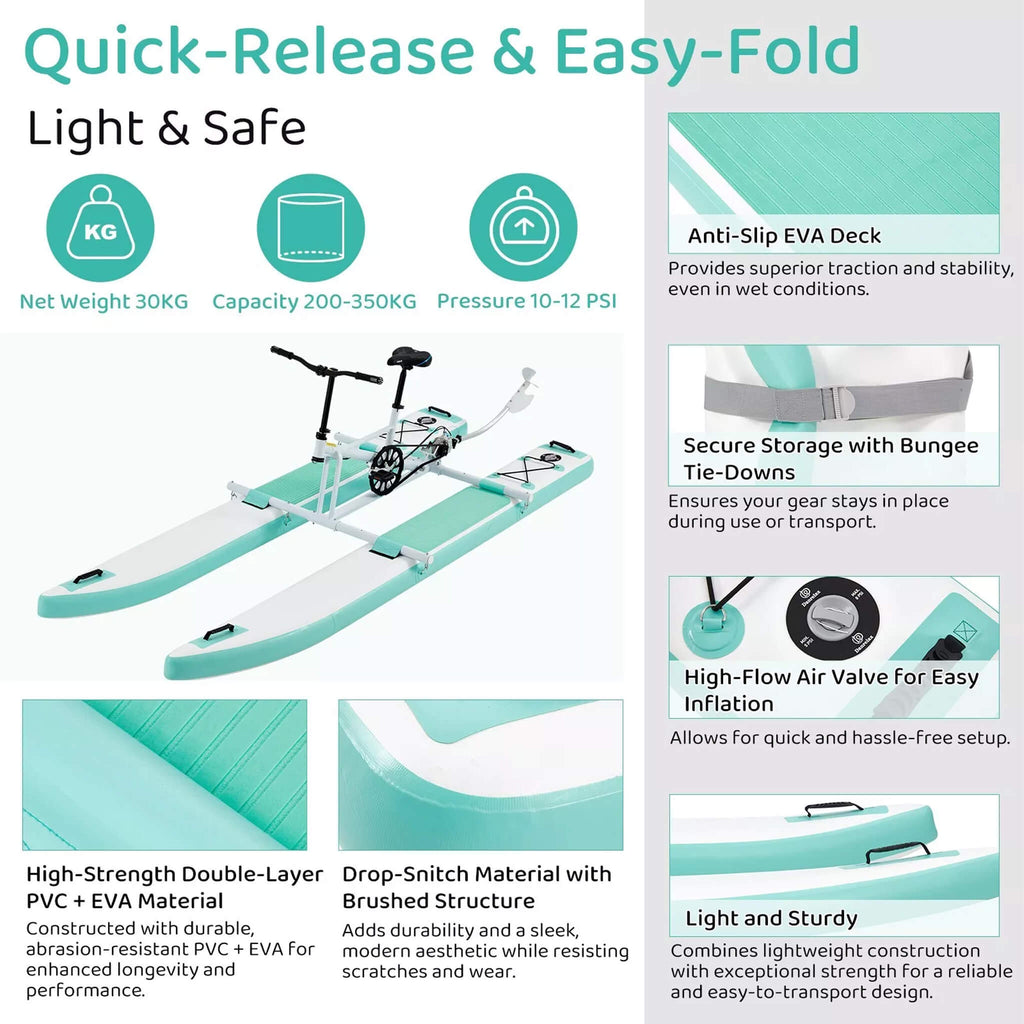 Unleash the thrill of combining biking and boating with the Portable Inflatable Water Marine Pedal Water Bike Kit! Perfect for water sports enthusiasts, adventure seekers, and boating hobbyists, this innovative kit delivers an unparalleled on-water experience. Whether you’re gliding across serene lakes, navigating calm rivers, or exploring coastal waters, this water bike ensures excitement and ease every step of the way.