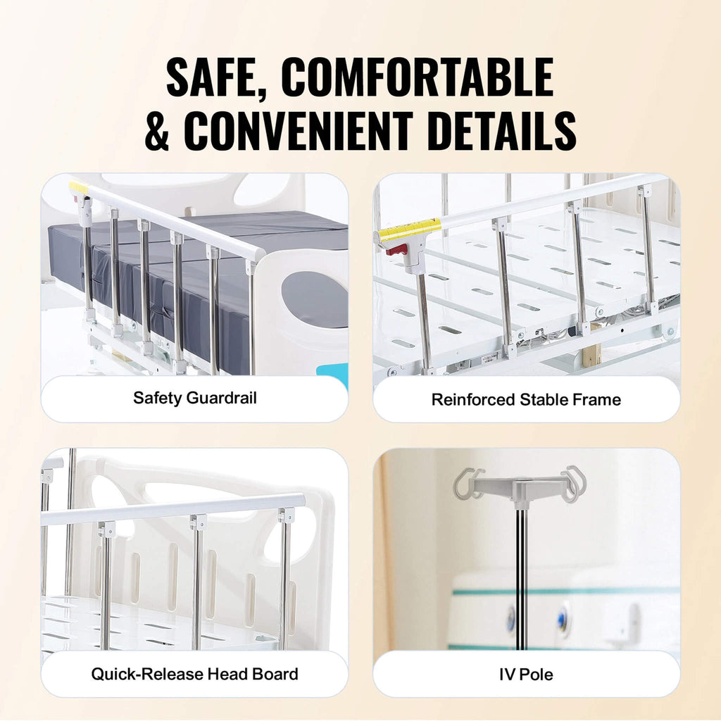 - This electric hospital bed suits hospitals, rehab centers, and home care. It’s ideal for rehabilitation or long-term care, providing comfort wherever you need it.