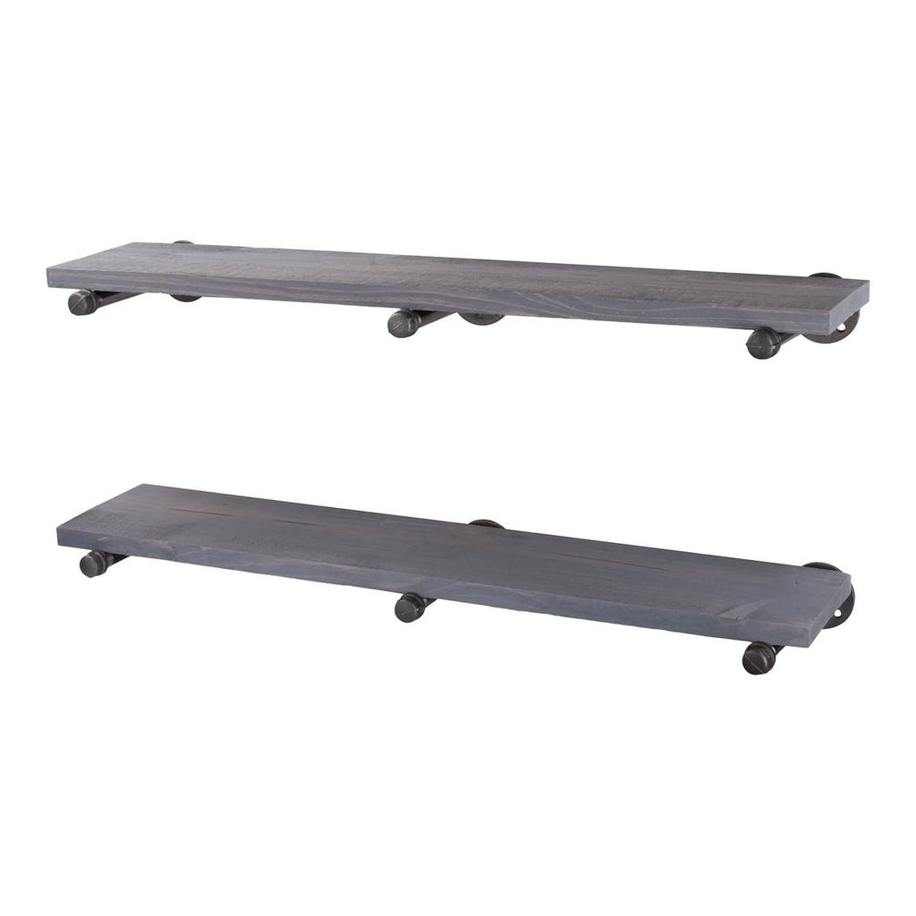 Accent your space with a genuine industrial pipe and real American wood shelf set. Our latest Pipe Decor shelves are comprised of genuine industrial pipes, flanges and sustainably-sourced Ponderosa pine lumber. These heavy-duty shelves make an excellent complement to any bar, den, garage or space of your choosing and fit across a spectrum of vintage to modern design styles. We have taken extra care in assembling this set and want you to know that you are getting a quality product made with real pipe and genuine USA pine. The included wooden boards measure 1 in. x 7.5 in. x 36 in., the kit includes 2-boards and 6-brackets. Assembly is required. All necessary screws and anchors are included.