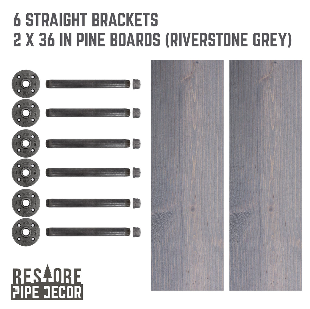 RESTORE Riverstone Grey 36 in. Shelves with Straight Brackets