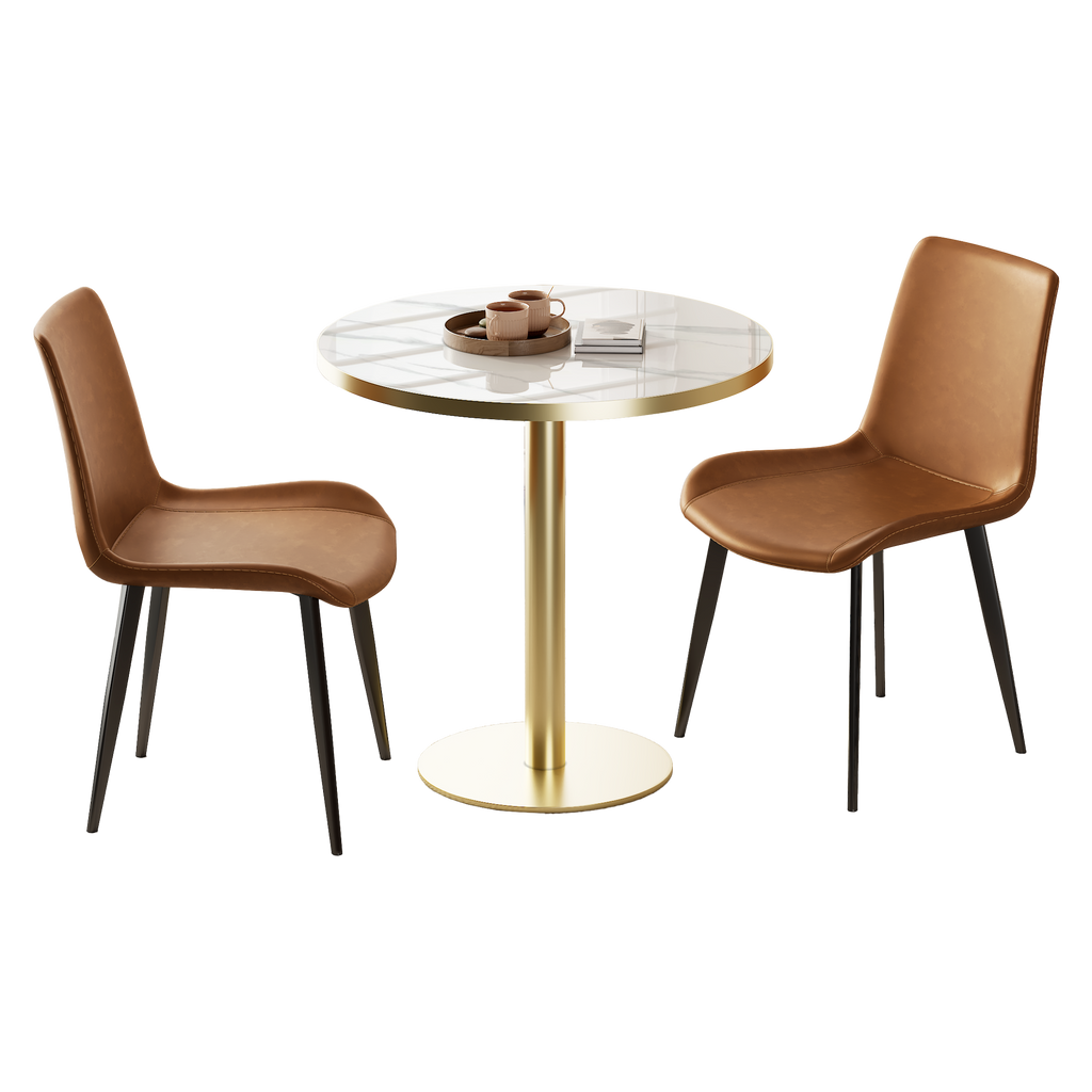 • Luxury Glossy Finish – Featuring a striking Snow Mountain Stone slab with a reflective shine, reinforced with scratch-resistant aluminum edges and anti-rust titanium gold steel legs.
