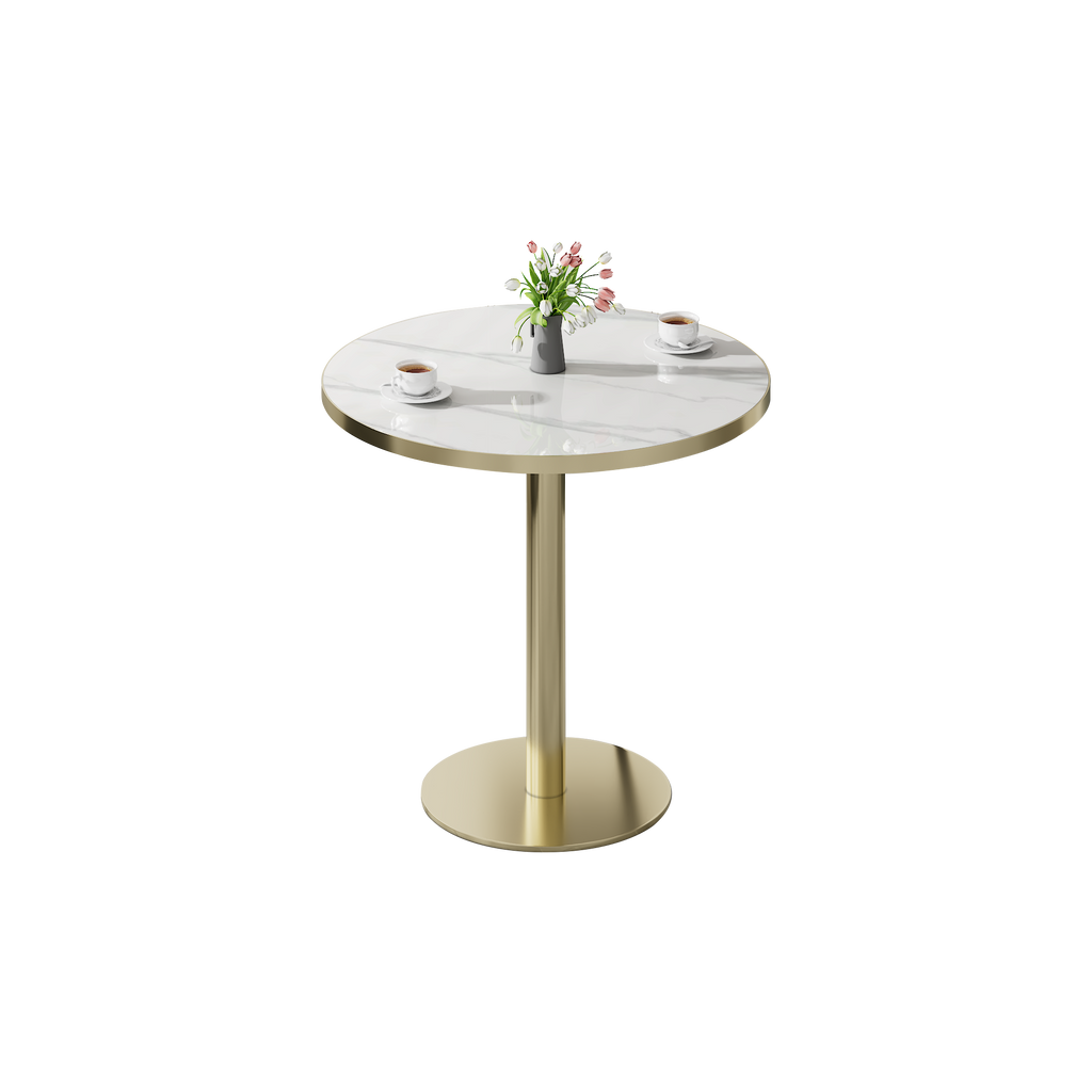 • Elegant & Durable Design – The high-gloss Snow Mountain Stone surface offers a smooth finish, complemented by aluminum alloy borders and sturdy titanium gold legs for lasting sophistication.