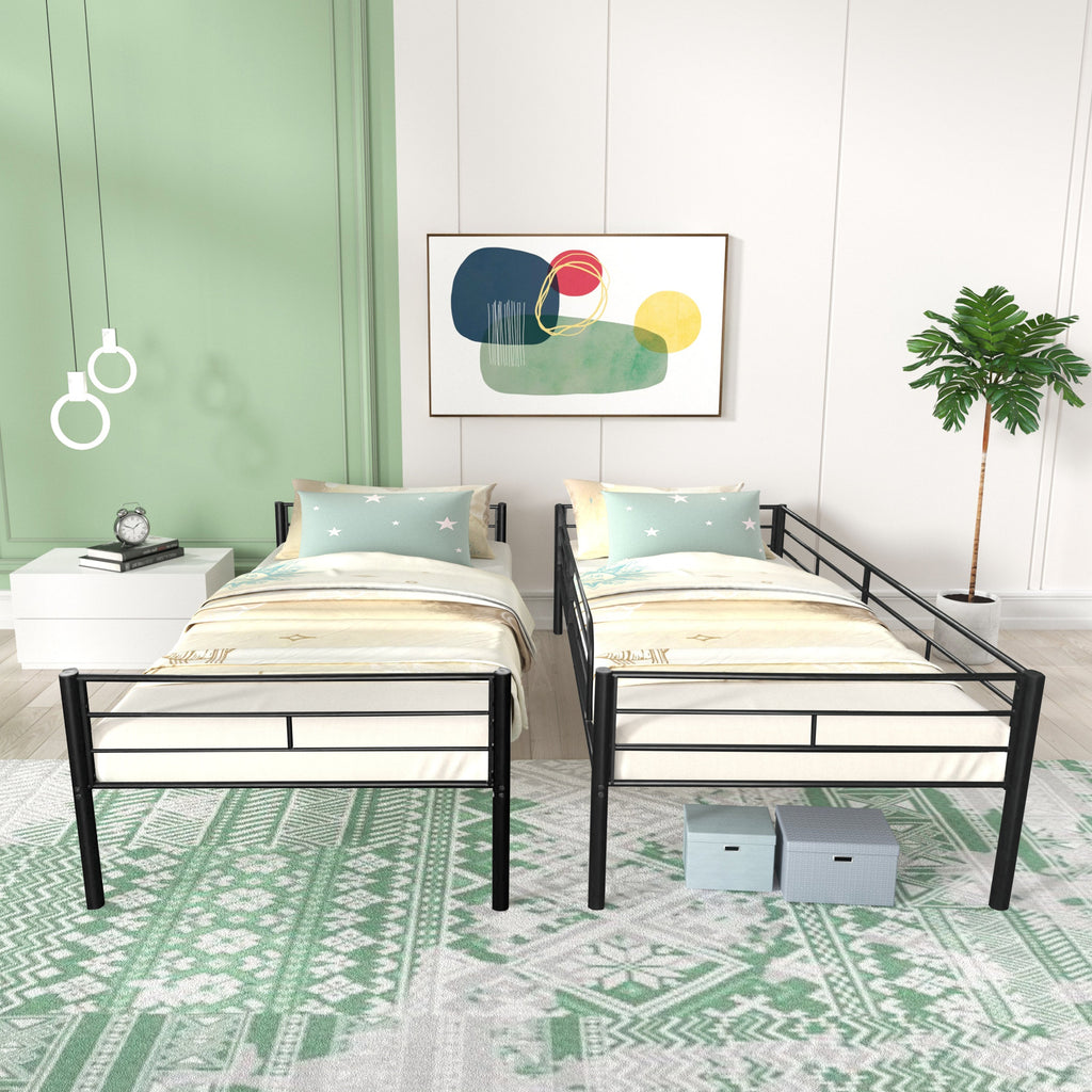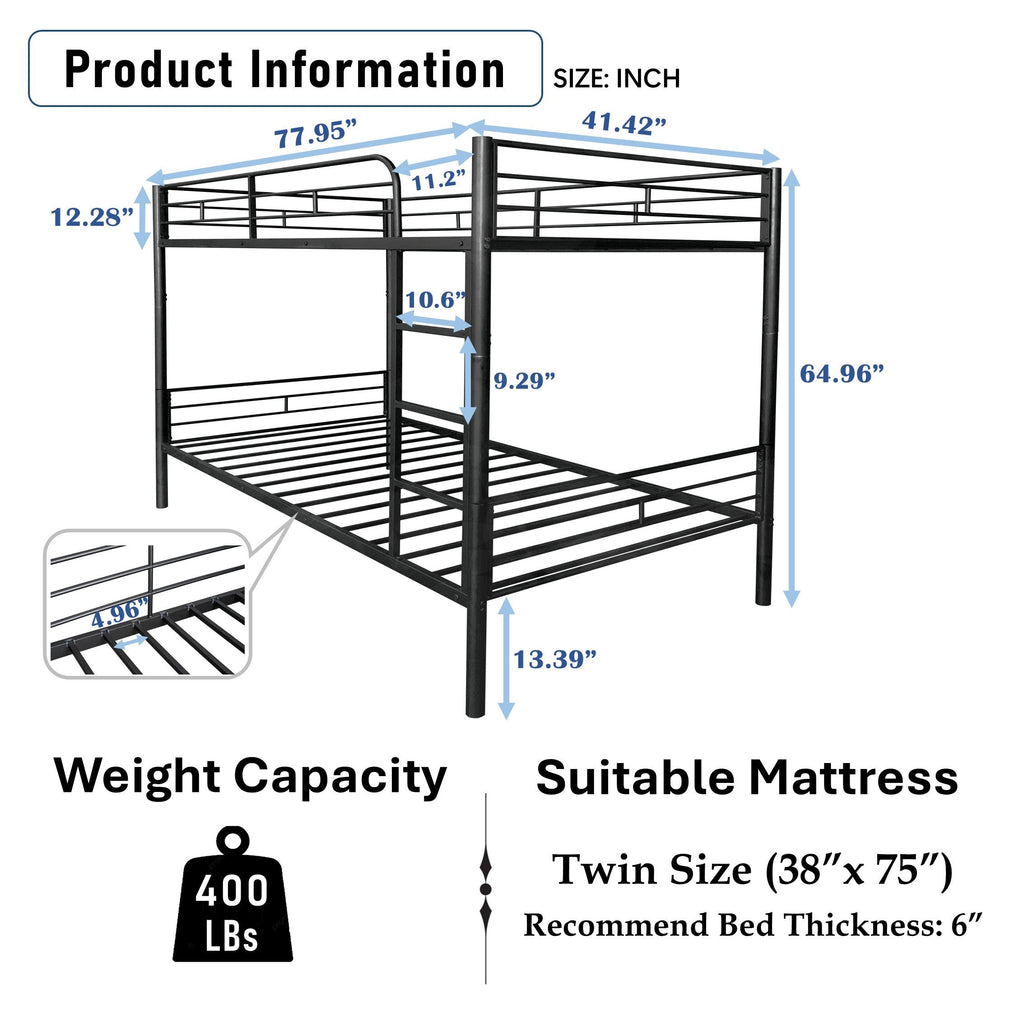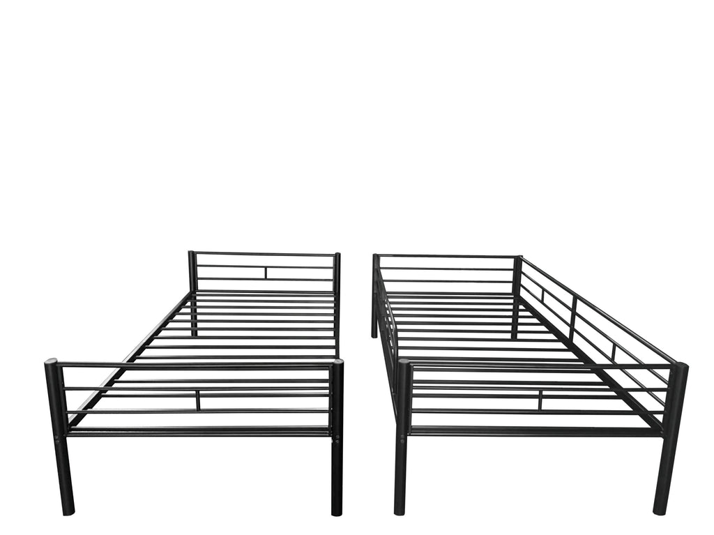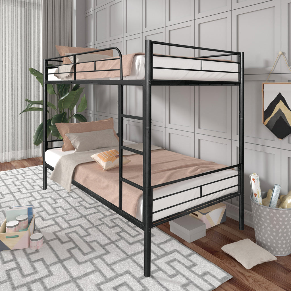Made of sturdy steel with anti-rust coating, this twin over twin bunk bed is solid and durable to meet the heavy-duty load support. The bunk design doesn’t only save the sleeping space. The clearance underneath the bottom bed also provides the storage space for your belongings. With the detachable design, this bunk bed can be separated to 2 twin beds, depending on what you need. This twin over twin bunk bed is a perfect space-saving solution for you to choose.