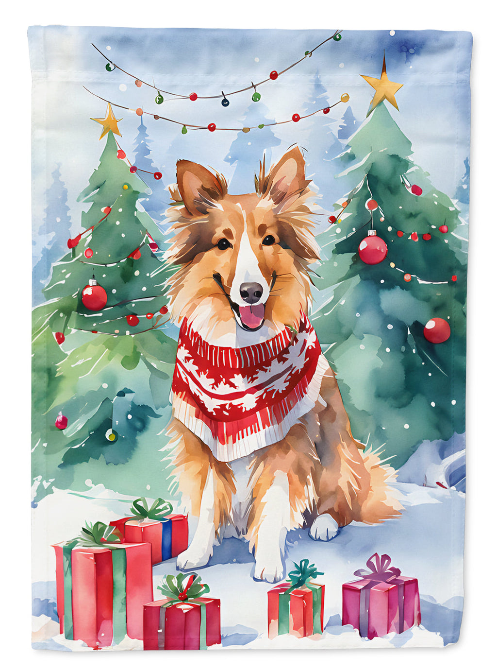 Sheltie Christmas Garden Flag – Cozy Dog Holiday Decor with Tree & Presents