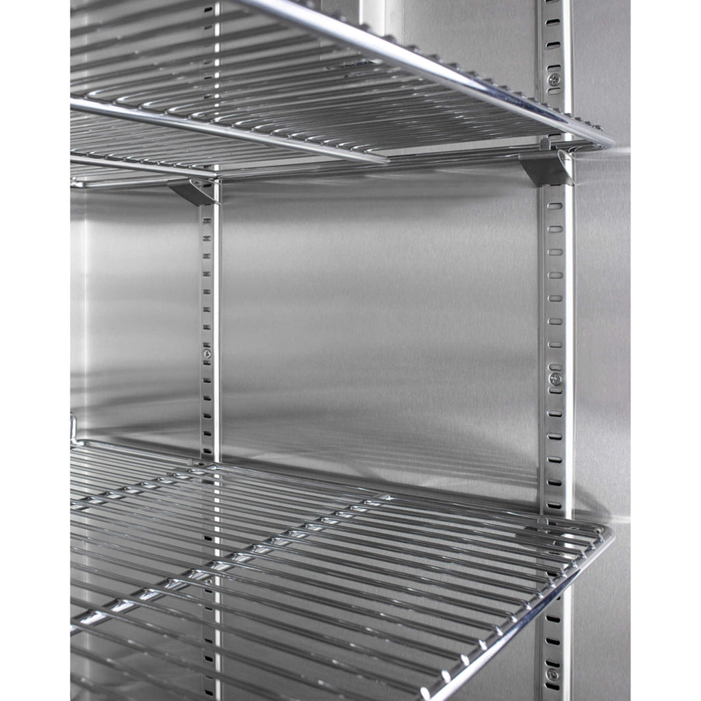 • Built with a fully-finished 304 grade stainless steel cabinet and interior, foamed-in-place insulation, and a flush back, this unit is designed for lasting durability and easy cleaning in tight spaces.