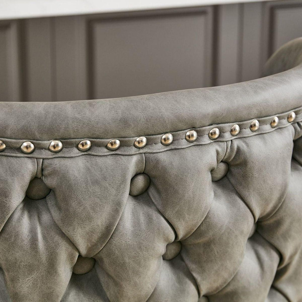 • Hand-pulled buttons at the back reflect luxury.Hand hammered rivets for decoration