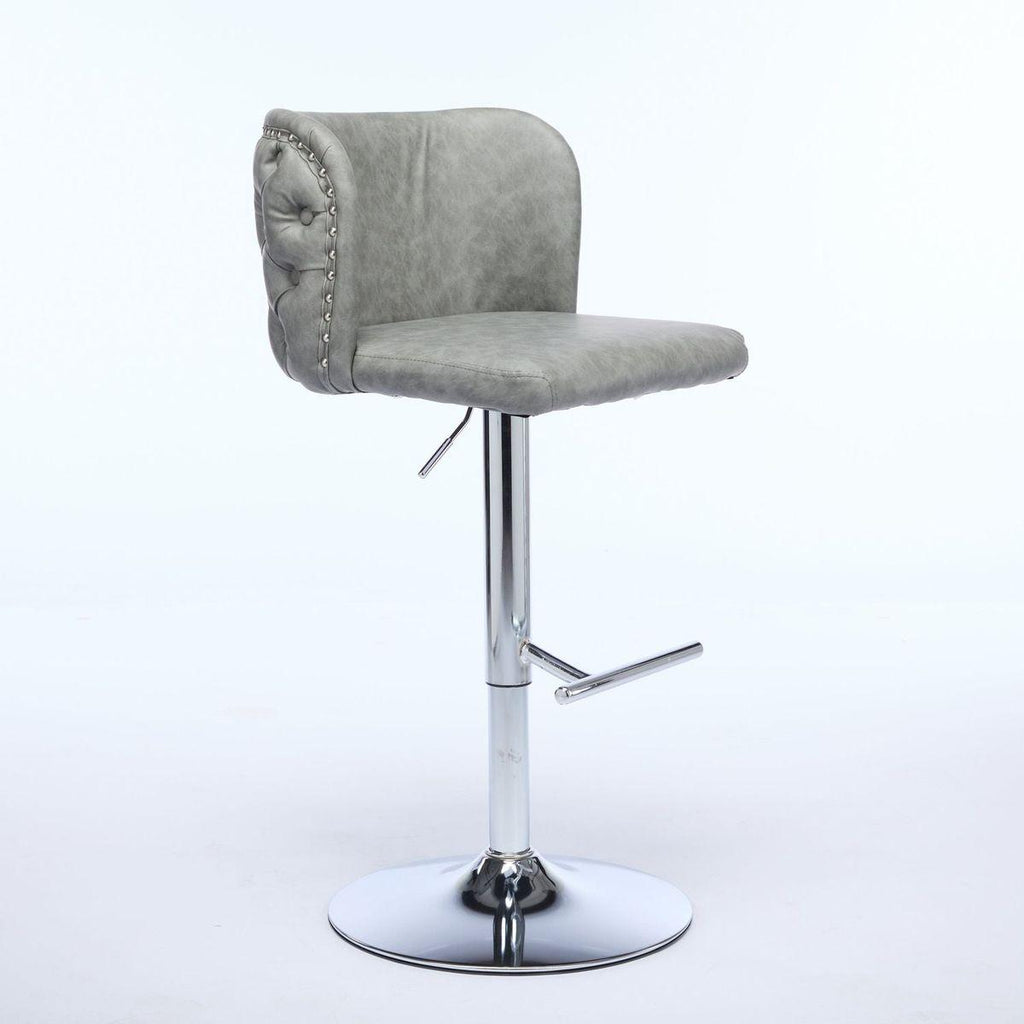 Swivel Barstools Adjusatble Seat Height With Chrome Base, Modern PU Upholstered Bar Stools with the whole Back Tufted, for Home Pub and Kitchen Island,Gray, Set of 2