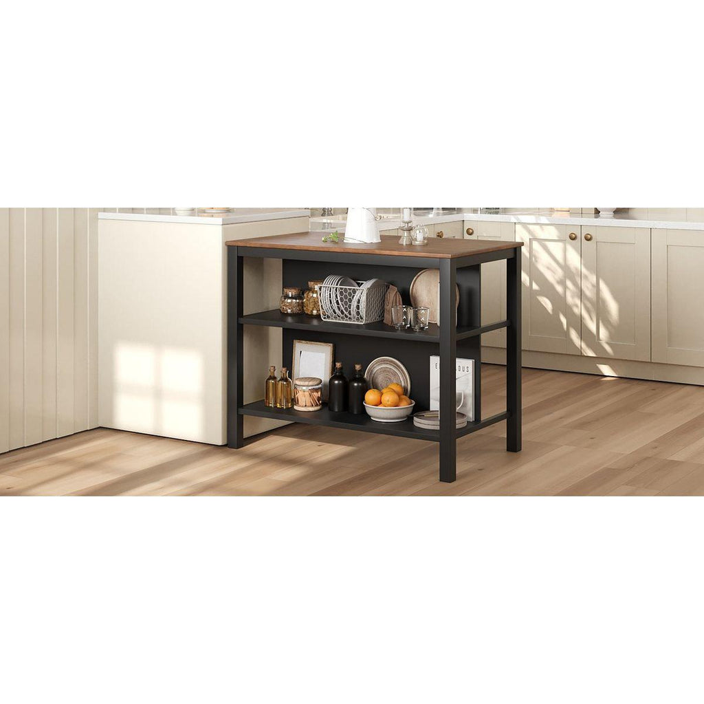 - [Multifunctional Table] It will be crowded to add an extra dining set in a small apartment. Designed with half shelf side and half full open side, this kitchen island will also be a dining table with lots of room to tuck your bar stools or chairs without wasting space. (Warm Notice: Stools or chairs not included.)