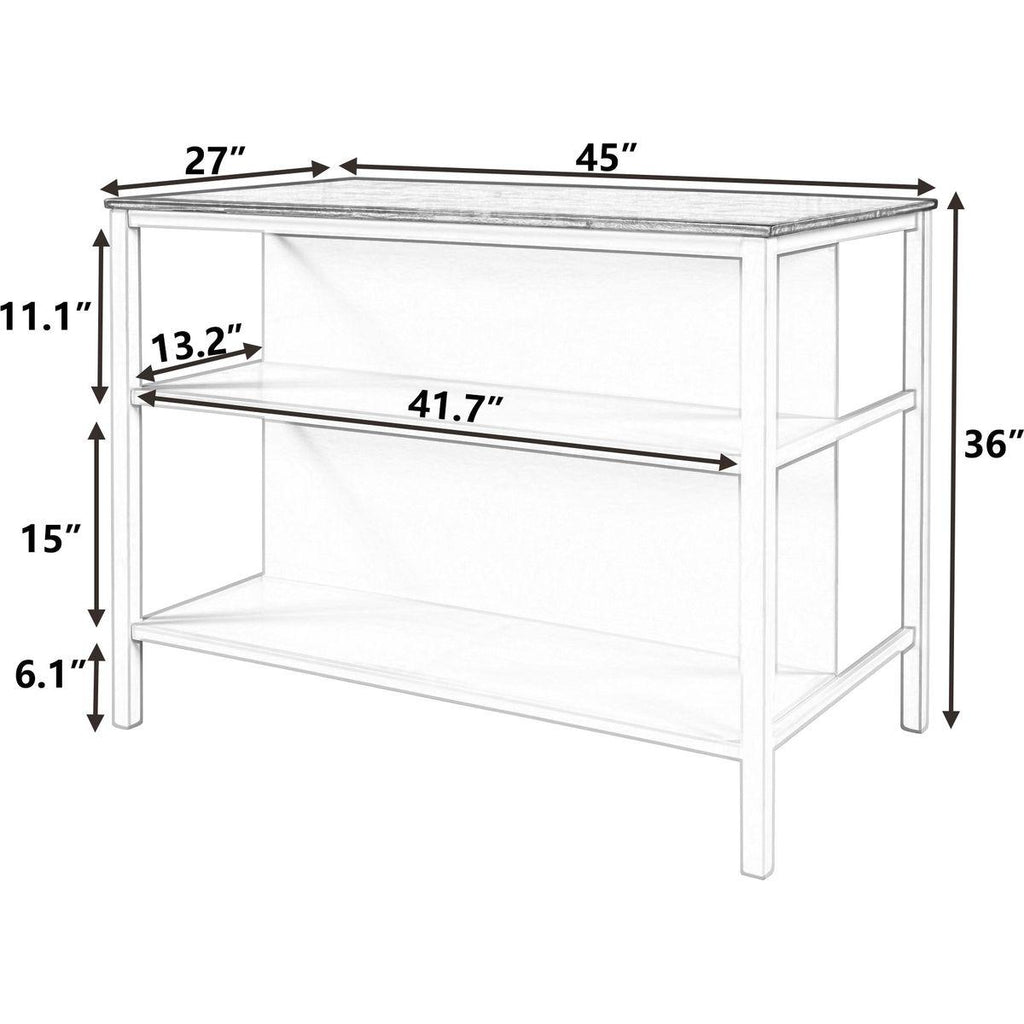 - [Large Open Shelves] For this kitchen island, it has 2 convenient full length open shelves underneath the tabletop. To organize all those extra pans, pots even a small microwave oven, these shelves will help a lot with its 41.7'Lx11.1'H in upper shelf and 41.7'Lx15'H in lower shelf.