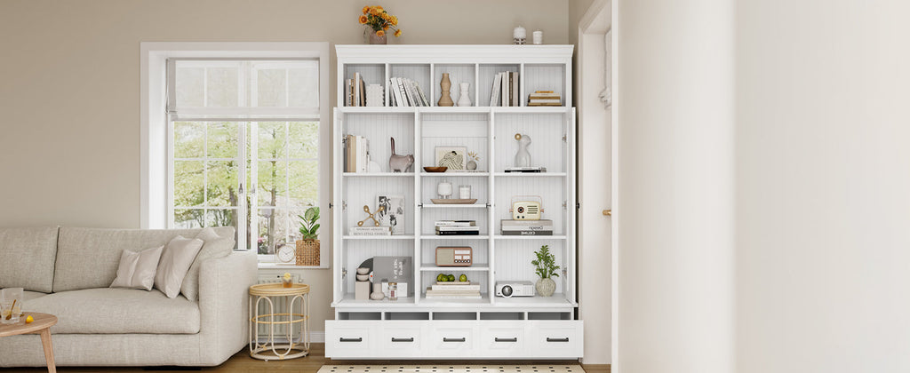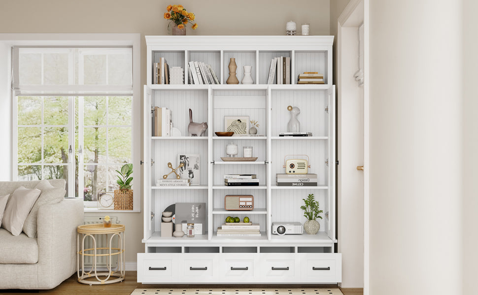 There are five shelves are adjustable, allowing you to customize the height of each shelf to suit your needs. Whether you need taller spaces for large items or shorter compartments for smaller accessories, these adjustable shelves provide versatility and adaptability.