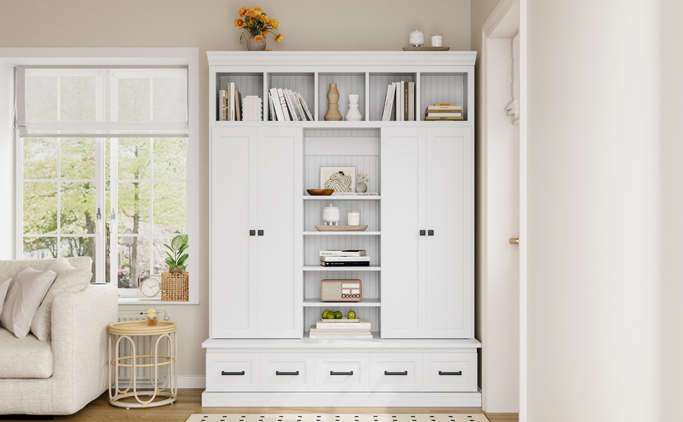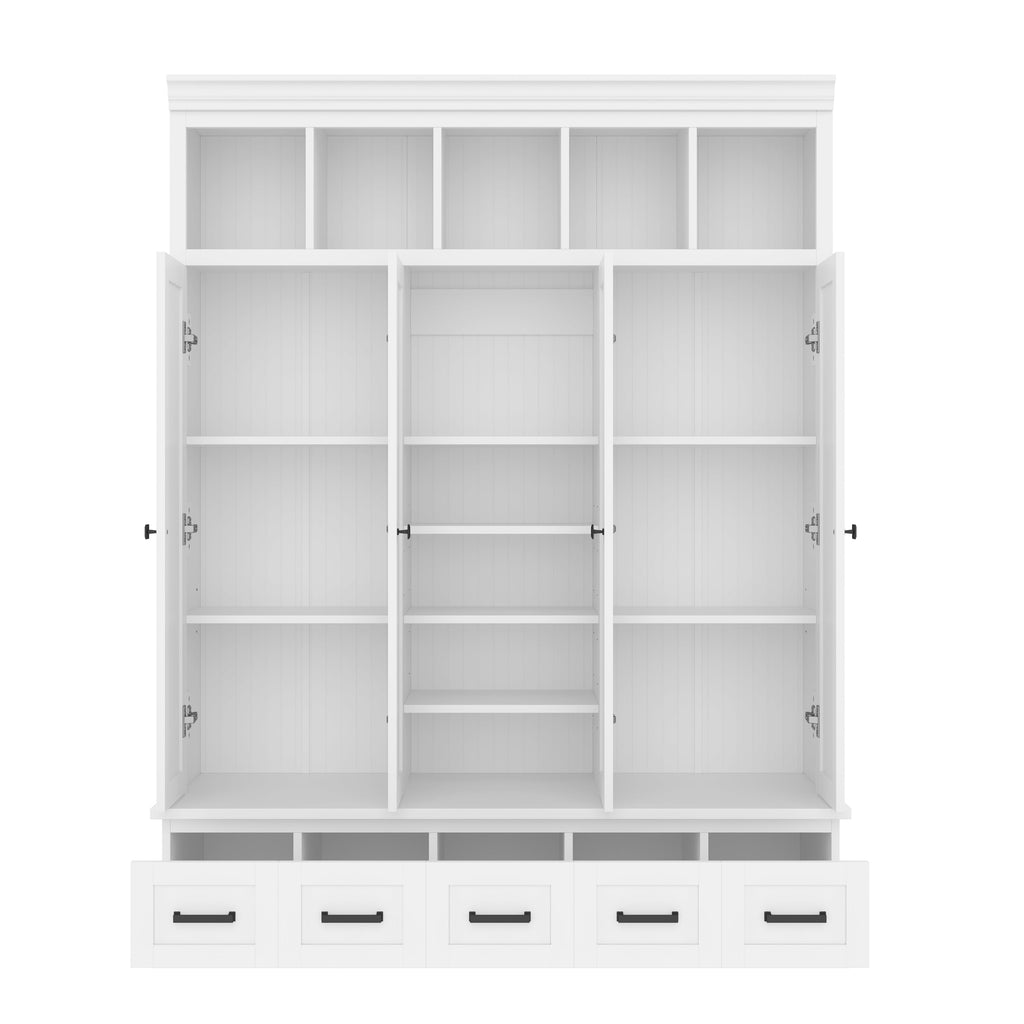 U-Can 78.7''H Hall Tree with Bench and 5 Storage Cubbies, Modern Entryway Storage Organizer Cabinet with 4 Doors, 5 Drawers and Adjustable Shelves for Hallway, Entryway, Living Room