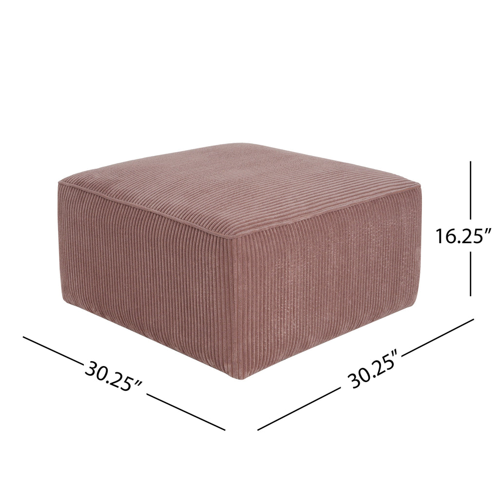 - Transform your living room with our corduroy sectional sofa ottoman. This piece combines minimalist elegance with a sleek design. The corduroy upholstery adds a touch of sophistication. Experience luxury seating with dense foam padding and a pocket coil spring system in the cushions, ensuring maximum comfort. Built to last, this ottoman is constructed from durable plywood and wood, with non-marking foot caps to protect your floors and secure connectors for modular pieces.