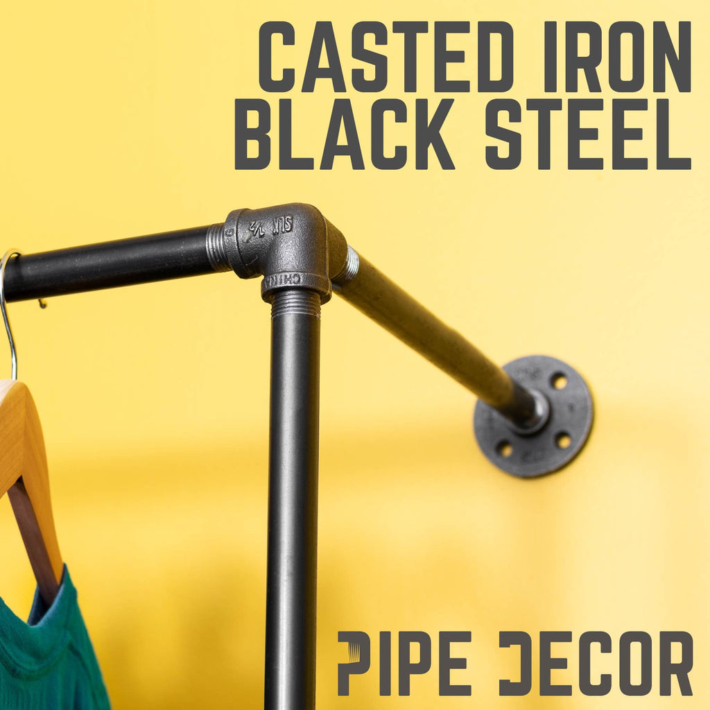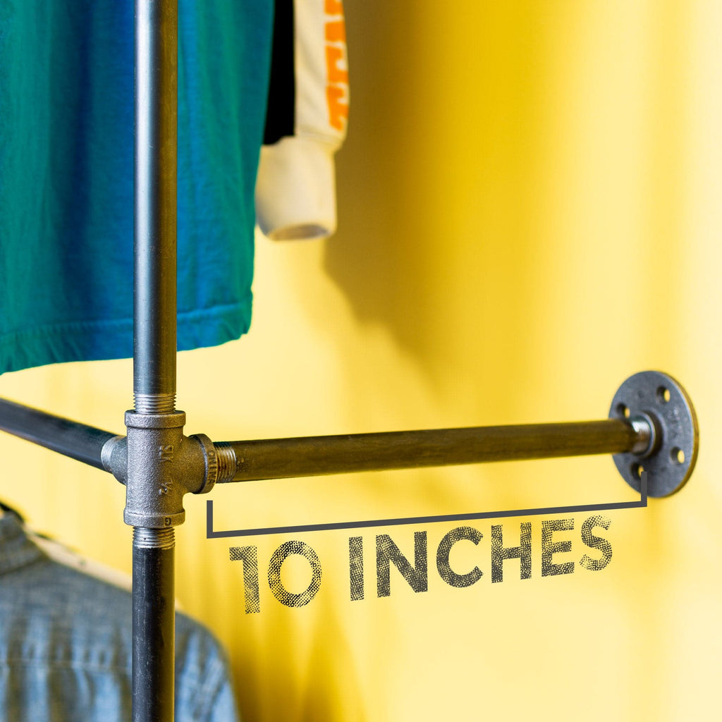 PIPE DECOR's easy-to-assemble wall-mounted, double-hung clothing rack will have your room looking organized in no time. Don't let the simple design fool you—our heavy-duty pipe coupled with six malleable iron flanges and assorted fittings will let you show your clothes off in style. An industrial clothing rack is a great way to showcase your unique fashion and keen eye for modern industrial design.