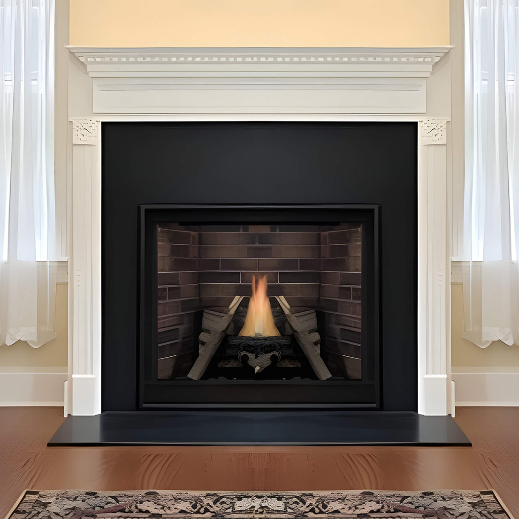 Elevate your home with the timeless charm of the Tahoe Clean-Face Premium Fireplace. Versatile liner options and intricate log set enhance the ambiance even when unlit. Optional lighting kit adds an extra touch of sophistication.