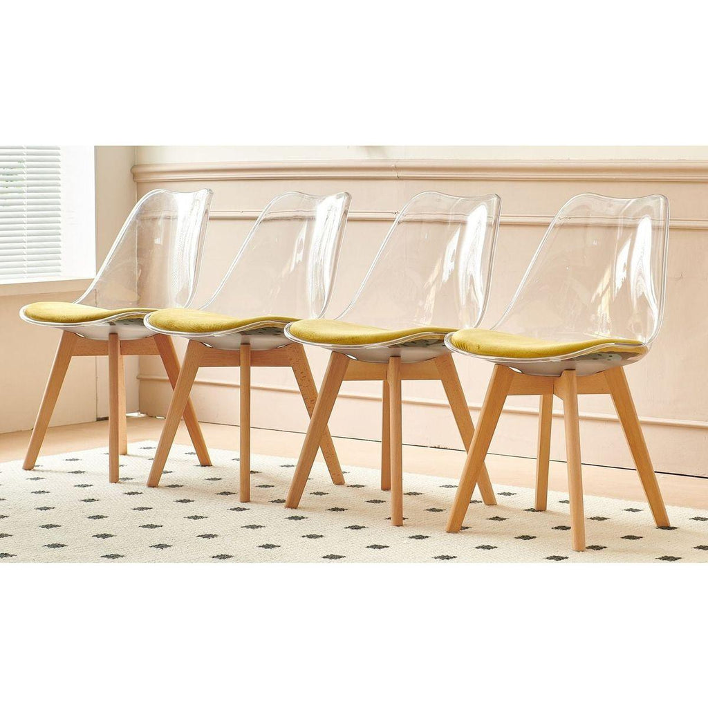 WOOD leg and transparent back chair,set of 4,dining chair,coffee chair