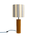 PAINTED OHRE YELLOW GLOSSY METAL BASE WITH GOLD FITTINGNAVY BLUE FABRIC CABLECREAM STRIPED SHADE27.56X11.81 IN1XE27