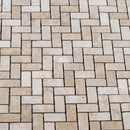 Medium Beige Travertine Tumbled Herringbone Mosaic Tile offers;