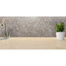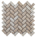 Medium Beige Travertine Herringbone Mosaics have a soft combination of beige tones. This mosaic tile has a travertine base and a tumbled.