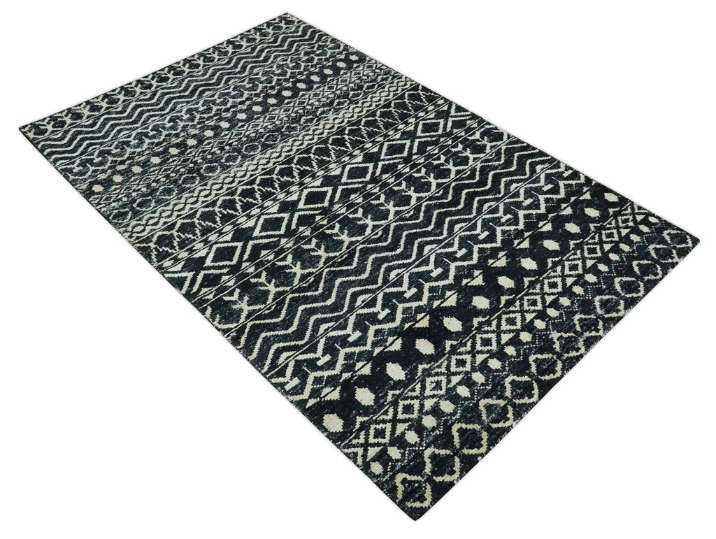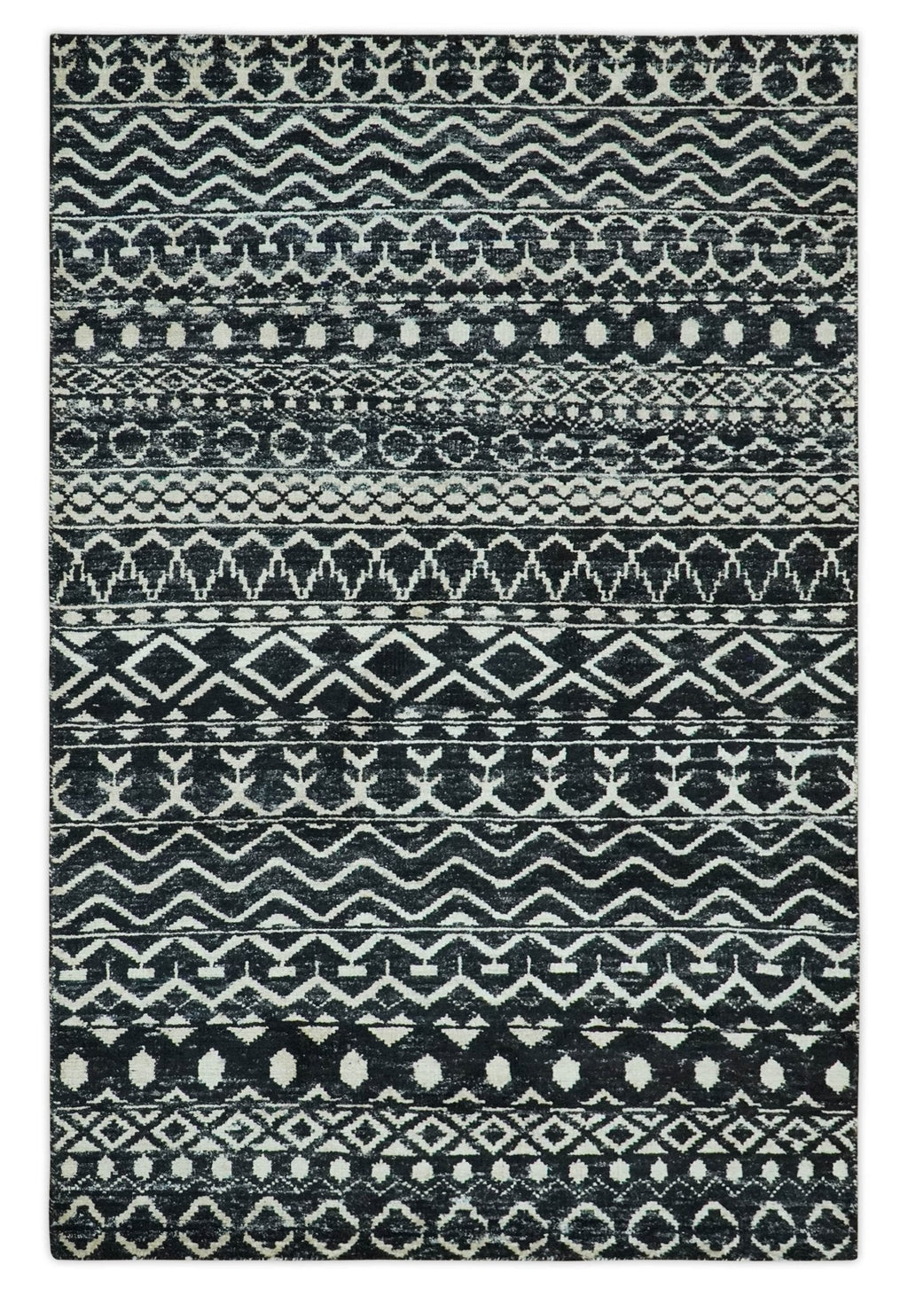 5.6x8.6 Black and Ivory Hand Knotted Southwestern Tribal Trellis wool Area Rug