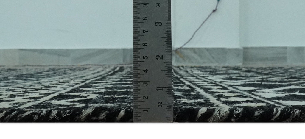 This 5.6x8.6 Black and Ivory Hand Knotted Southwestern Tribal Trellis wool Area Rug is expertly crafted with intricate hand knotting techniques to create a stunning and durable rug. Made from high-quality wool, this rug features a unique Tribal Trellis design that adds a touch of Southwestern charm to any space.