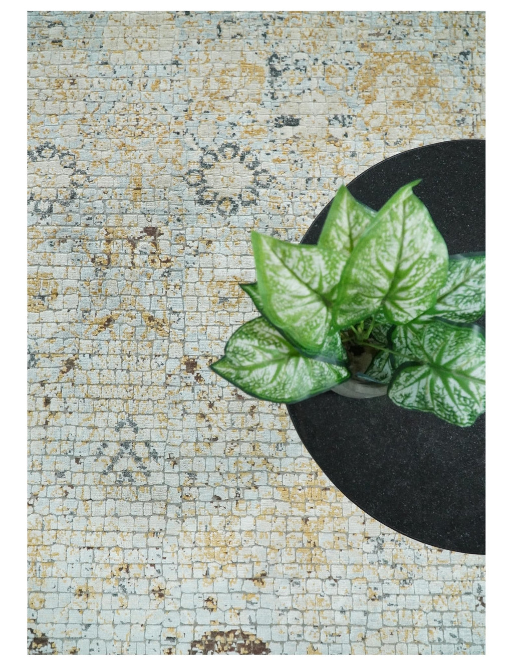 This specific rug is made in India, in the city of Bhadohi. Bhadohi is one of the biggest rug manufacturing cities. Carpet weaving in the region dates back to the 16th century during the reign of Akbar. The skilled artisans of Bhadohi have been carrying the tradition of rug-making for centuries.