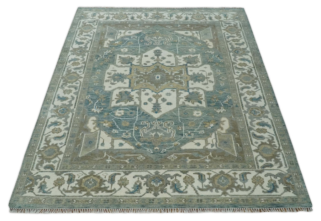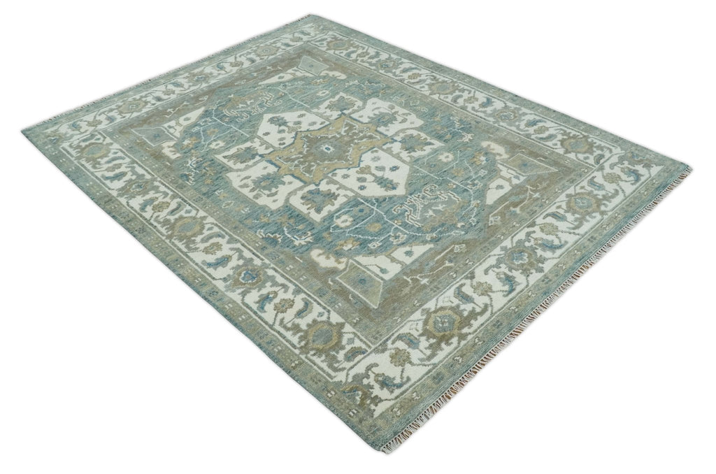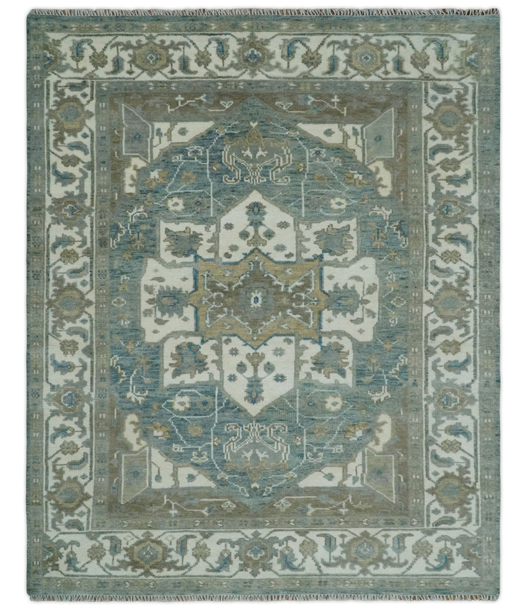 Bring a classic style to your living space with this 8x10 Hand Knotted Beige, Ivory and Gray Heriz Serapi Traditional Wool Area Rug. Enjoy a beautiful blend of colors with the combination of beige, ivory, and gray, and feel the soft texture of the hand-knotted wool material. Add a timeless elegance to your home today.