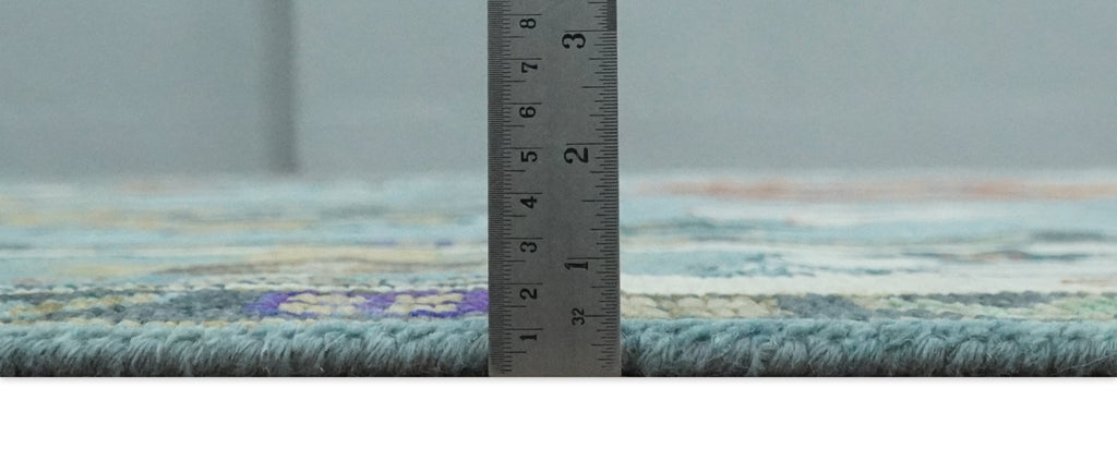 9x12 Hand Knotted Blue, Ivory and Gray vibrant Colorful Oushak Wool Area Rug