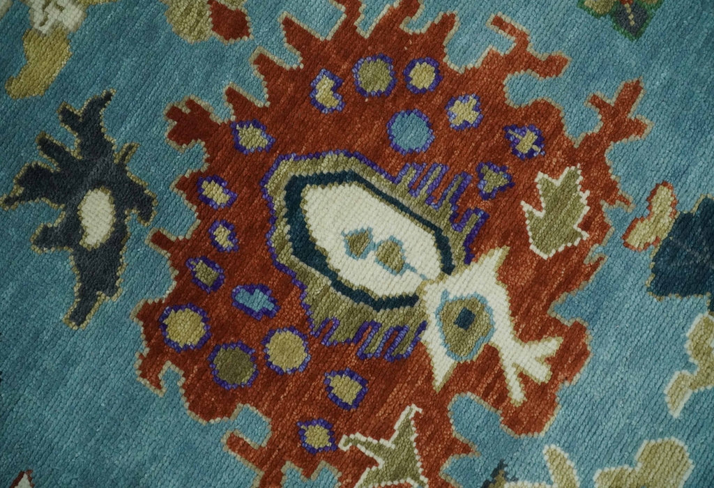 This 9x12 Hand Knotted Oushak Wool Area Rug is the perfect accent piece to add vibrancy and style to any room. Boasting beautiful shades of ivory, aqua, and gray, this rug is designed for durability and comfort with its intricate hand-knotted construction. Enjoy softness and vibrant colors all in one.